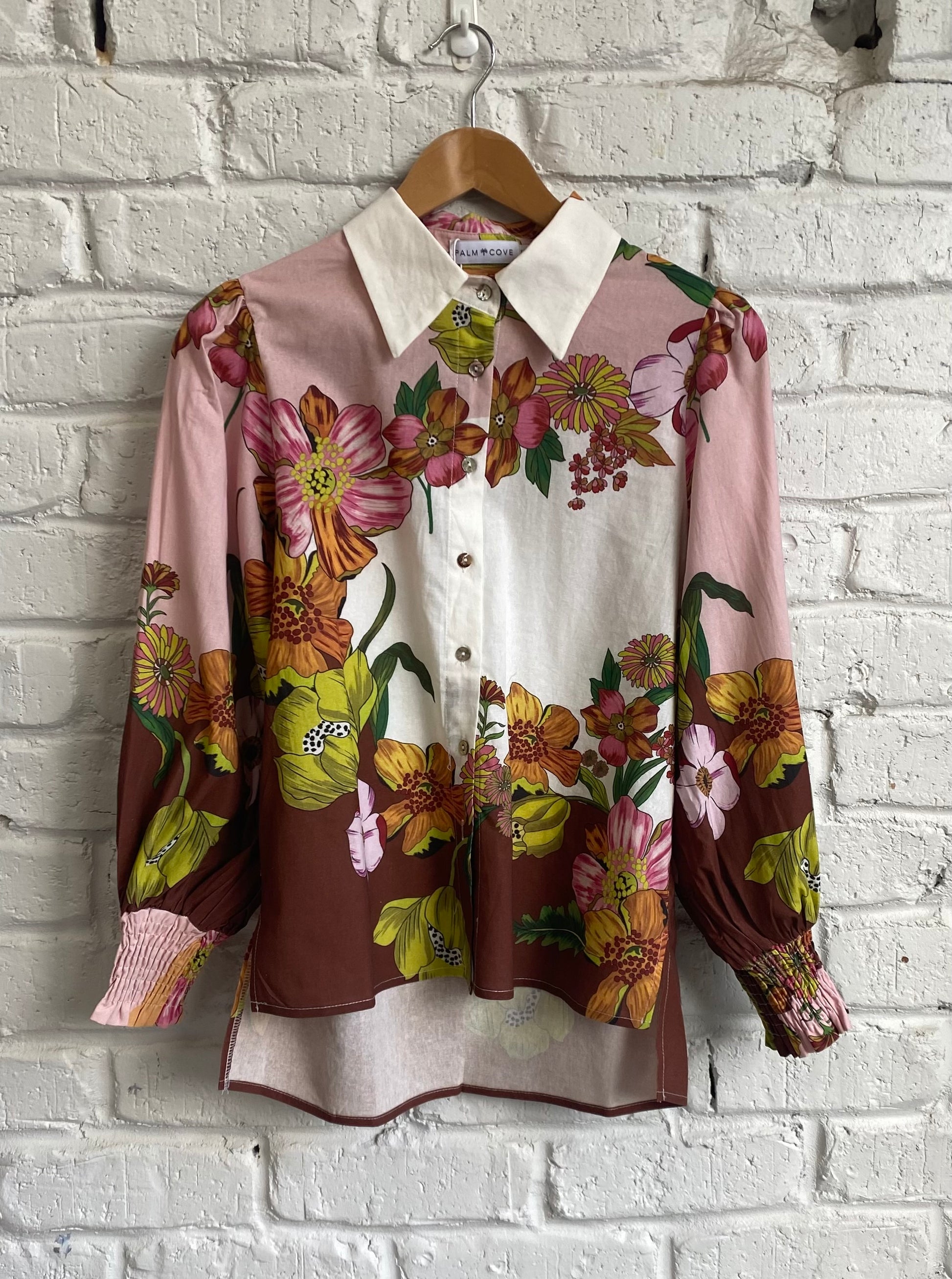 The Scarlett top pairs beautifully with the tilly top, the soft fabric and stunning floral design screams spring. We love the detail in the shell buttons and cute gathered sleeve.