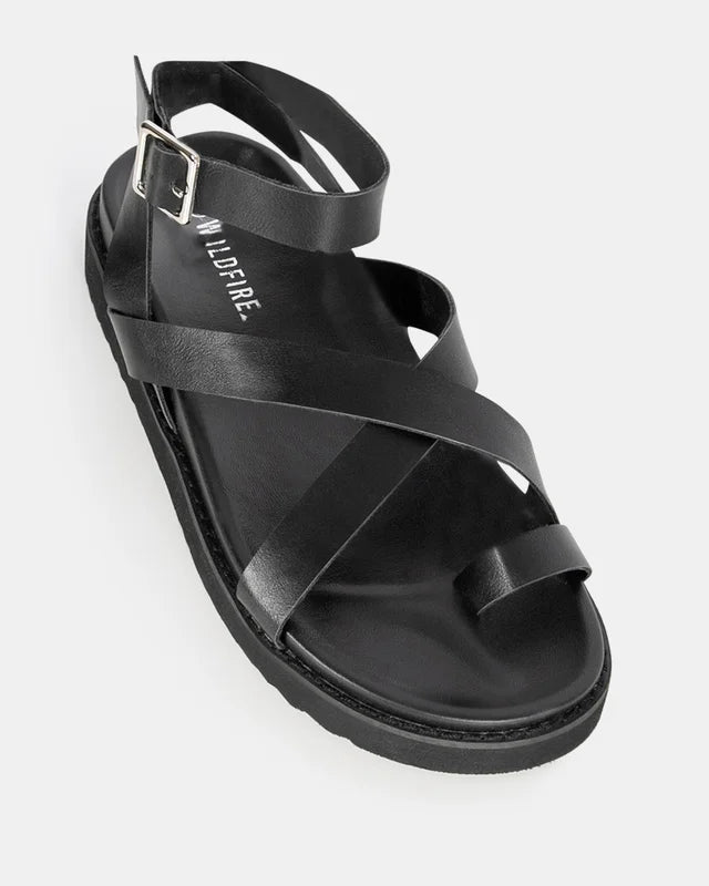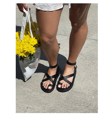 Summer sandal with silver buckle detail. Get set for summer with our sleek and stylish AZALEA-black sandal. With a subtle silver buckle detail that'll have you feeling like a million bucks (minus any glaring sun reflections - Ouch!), you can complete your summer look with ease.