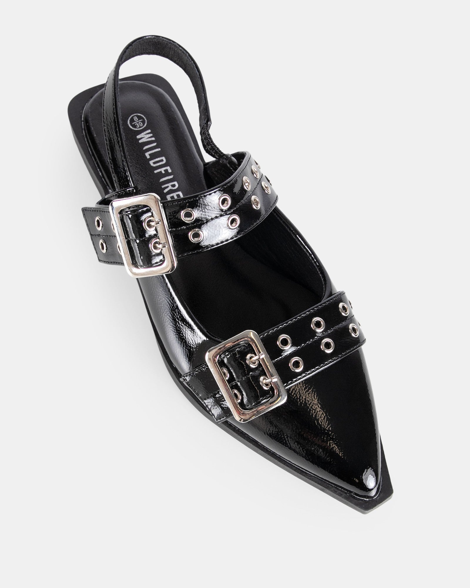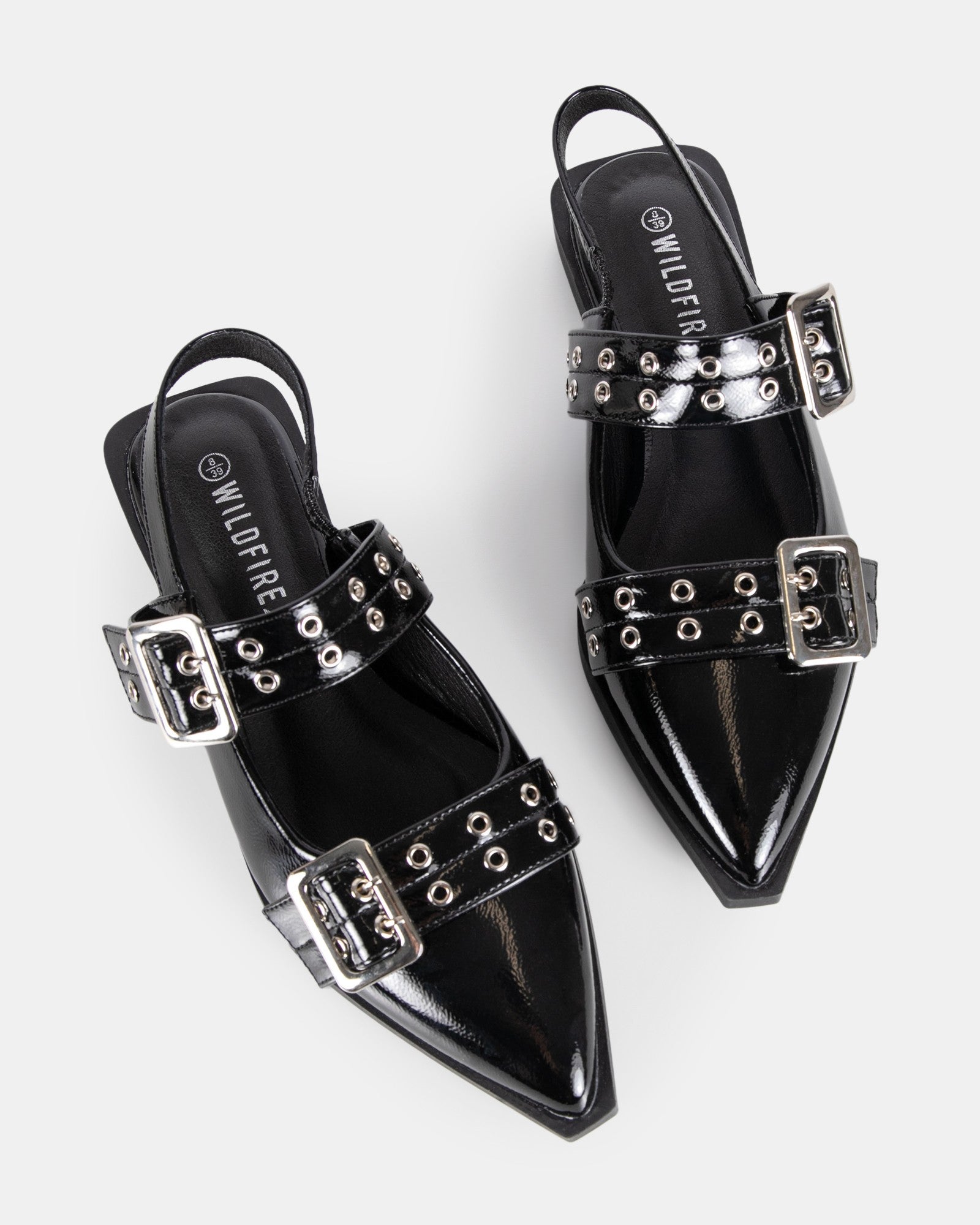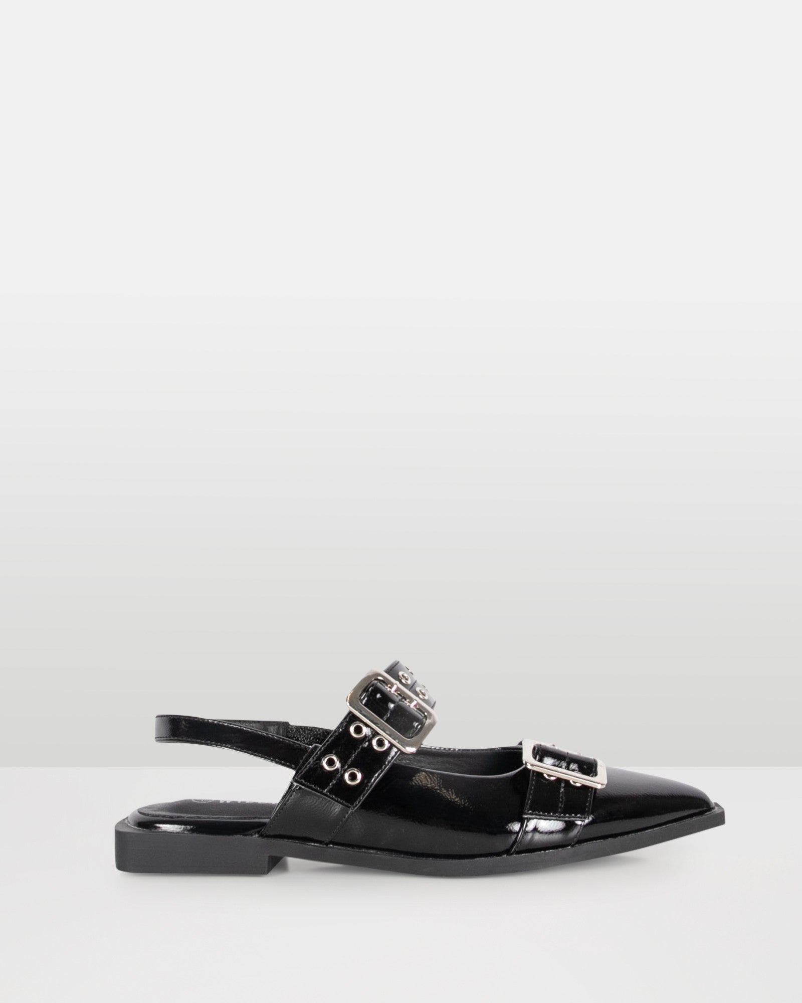 These black pointed flats are on point with their trendy buckle detail. Expertly crafted for added comfort, these shoes provide a chic and stylish look. Complete any outfit with these versatile flats.