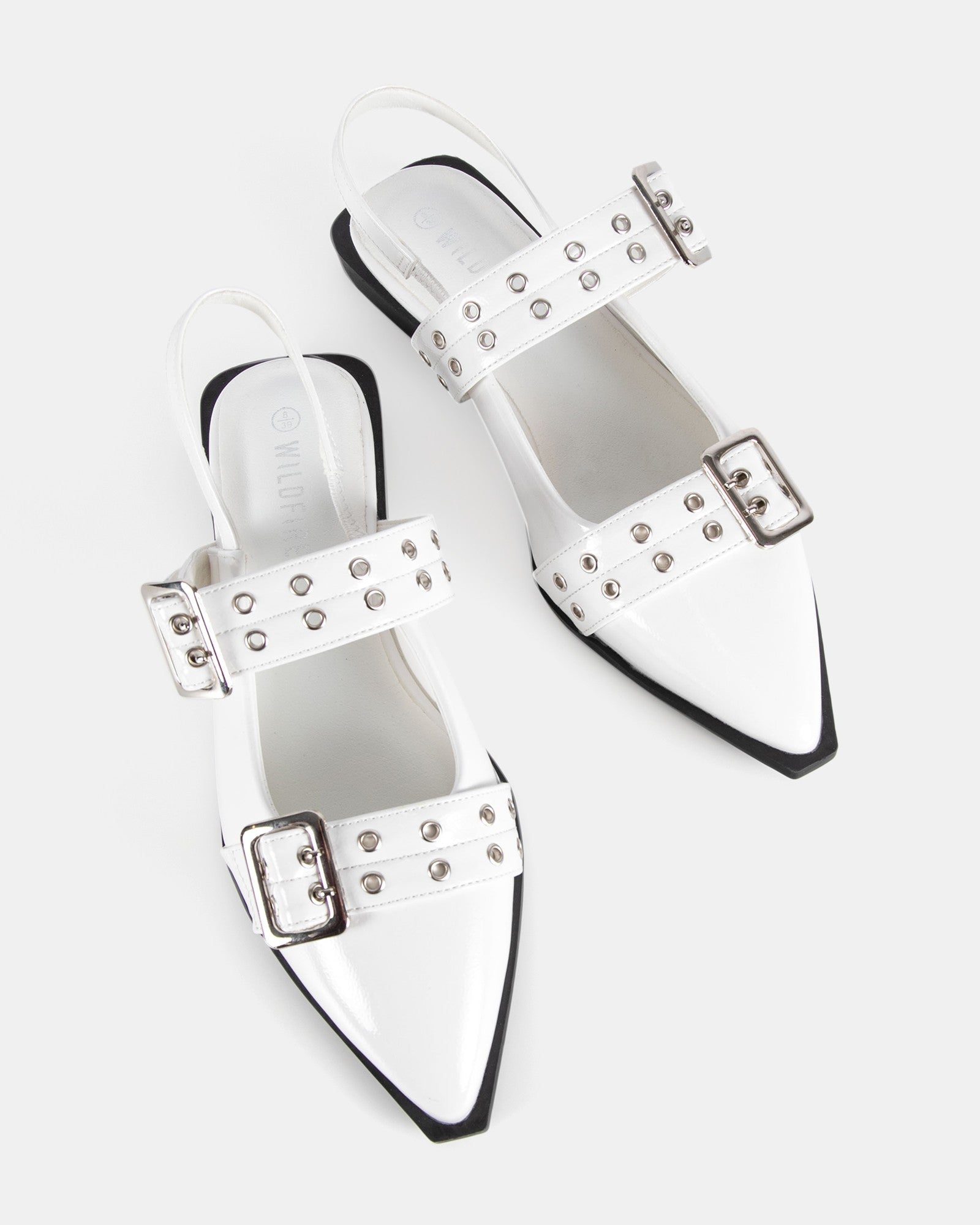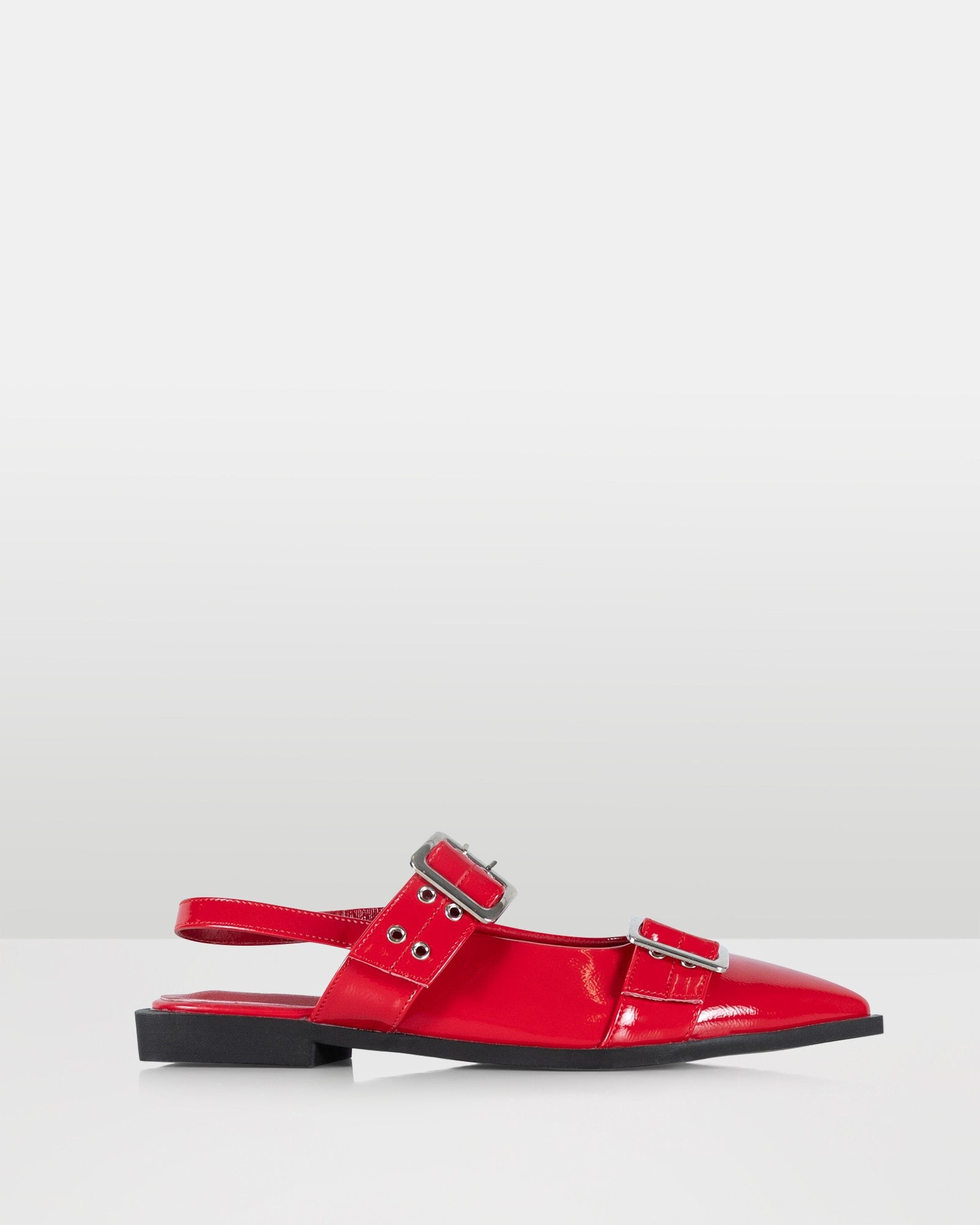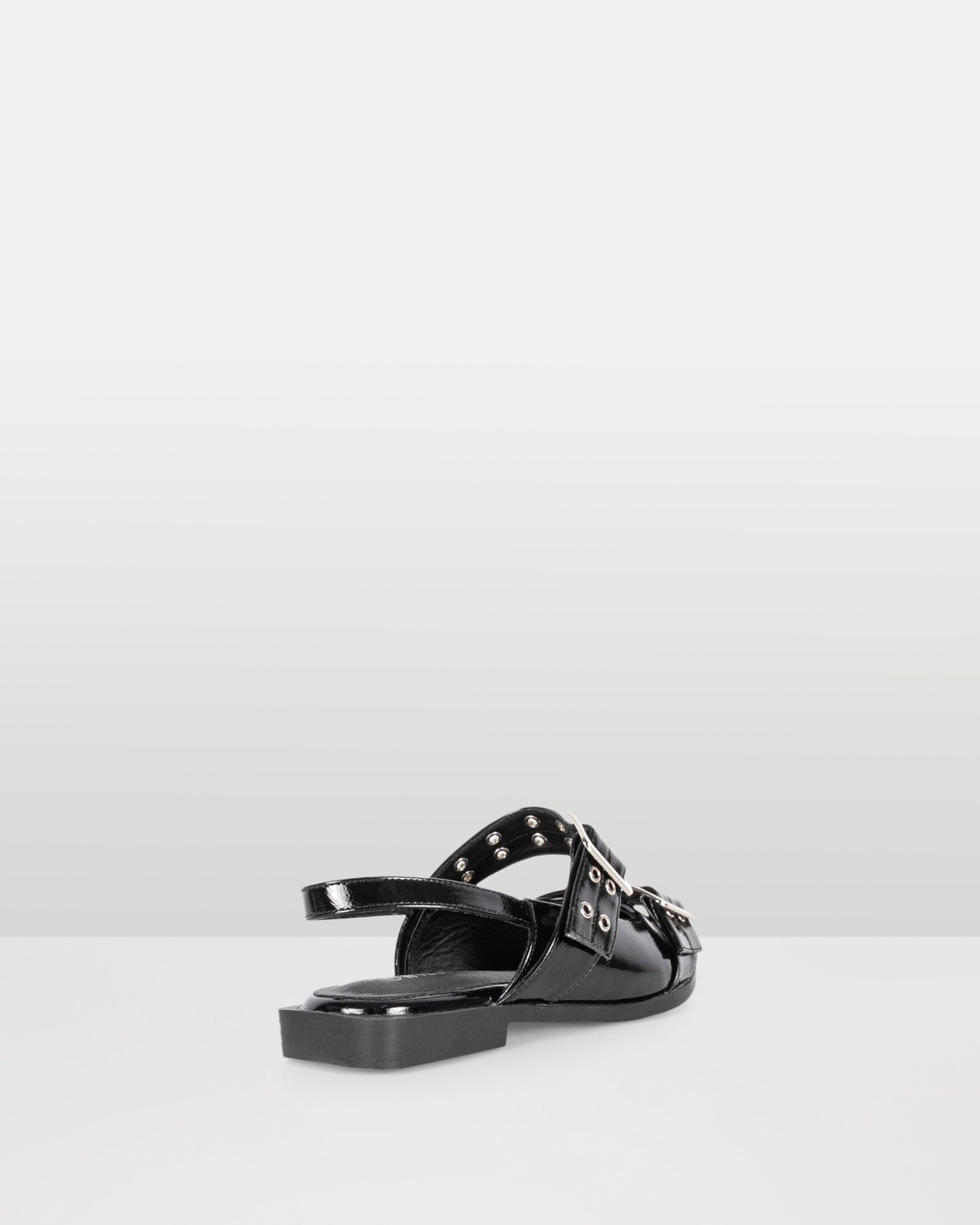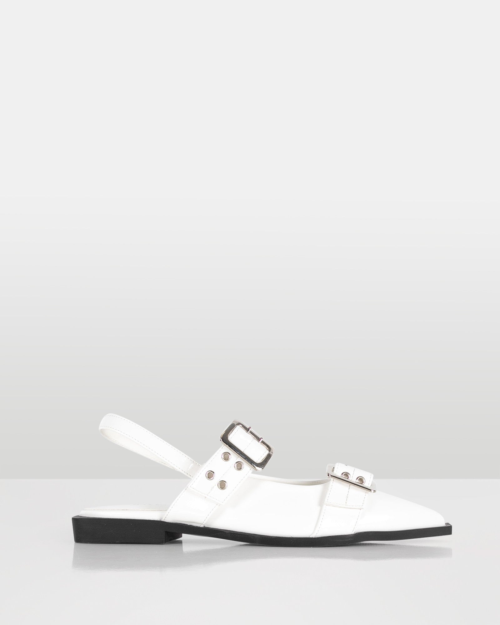 These black pointed flats are on point with their trendy buckle detail. Expertly crafted for added comfort, these shoes provide a chic and stylish look. Complete any outfit with these versatile flats.