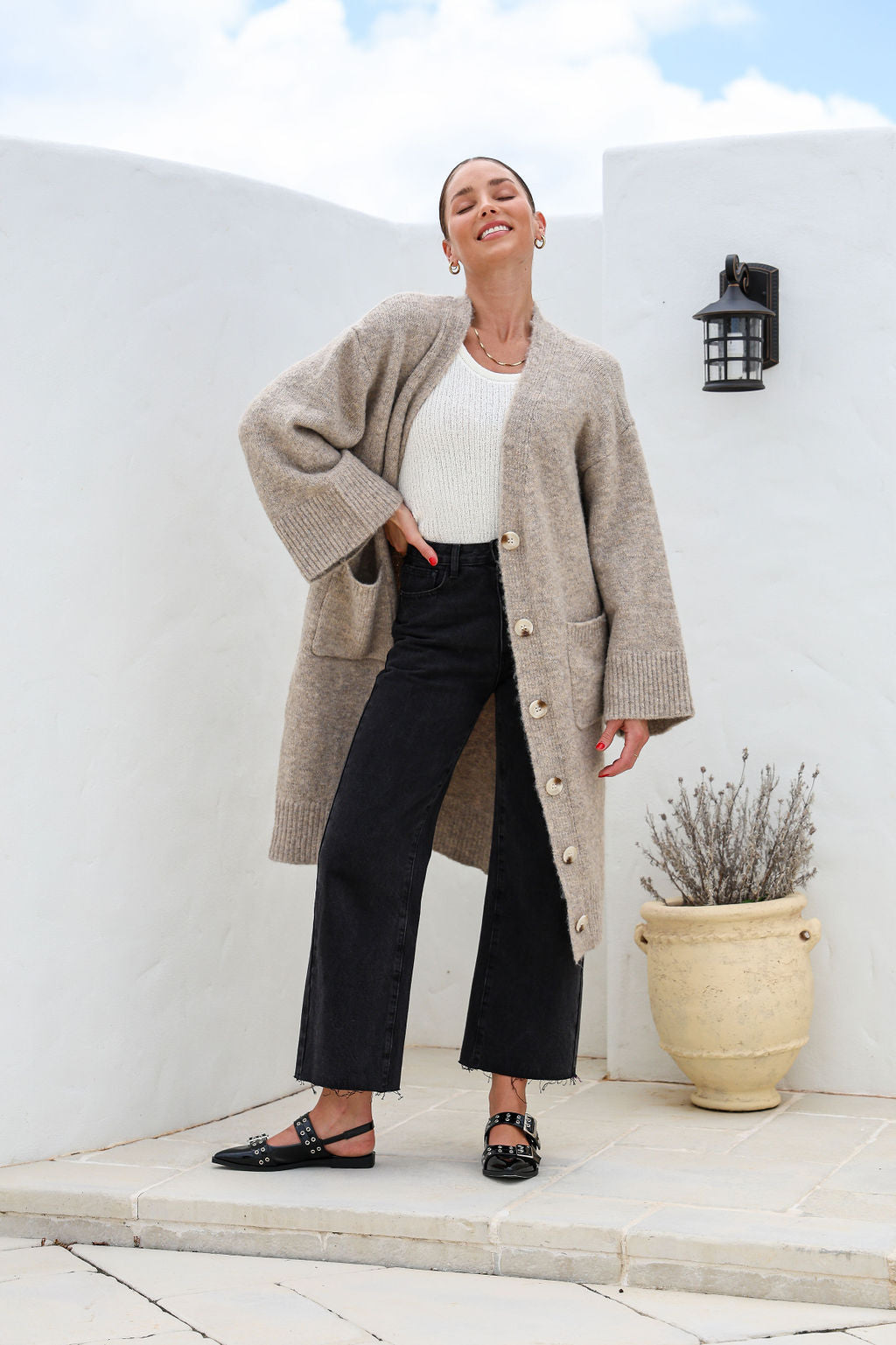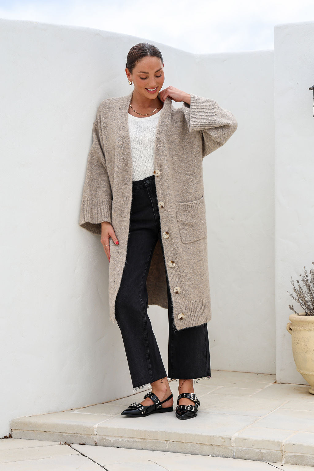Pair the Gemma Cardi with your favorite fall staples. Whether it's a crisp morning or chilly night, this oversized, center-buttoned cardi keeps you cozy and stylish.