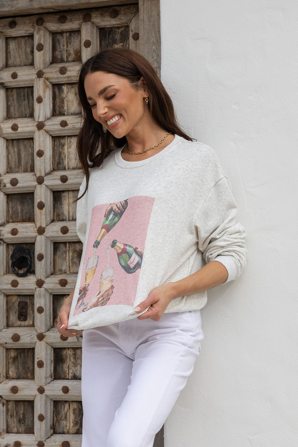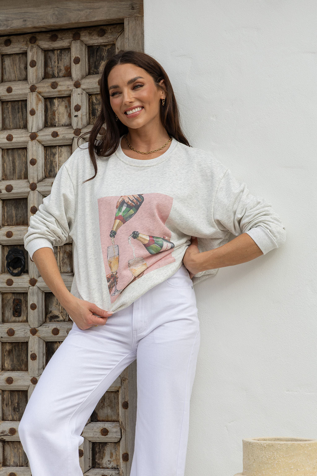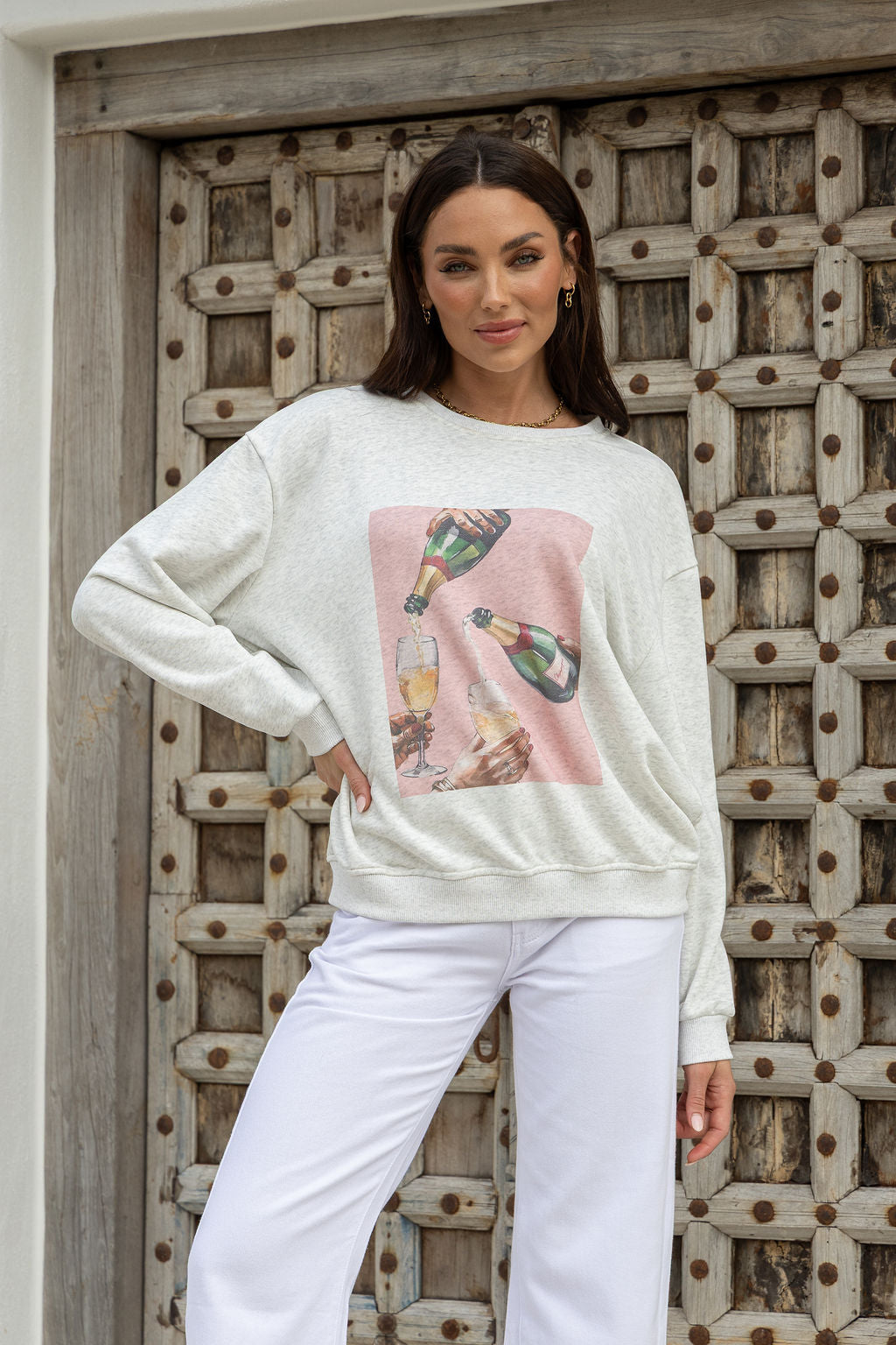 Pop the cork and make a statement in our POUR THE CHAMPAGNE JUMPER! This cozy unbrushed fleece top brings back the season's most coveted pattern in a gorgeous white marle base with eye-catching paper transfer print. The vibrant pinkacid wash adds that perfect splash of fun to your wardrobe. Supremely comfortable yet totally Instagram-worthy—grab yours and get ready for compliments to bubble over!