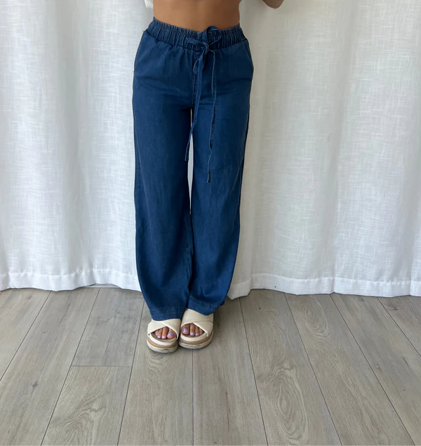 Experience the ideal combination of comfort and style with the TINSEL JEAN, featuring a lightweight denim material and a soft, elasticated waist for a perfect fit.