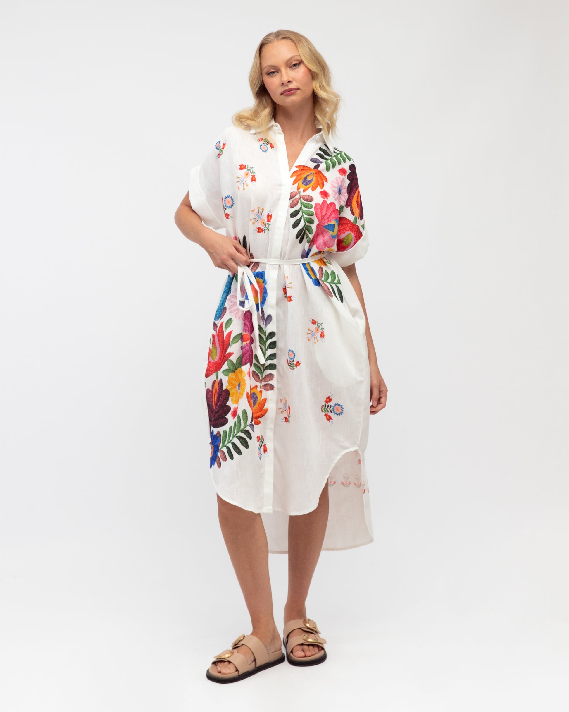 Elevate your everyday style with this vibrant printed shirt dress from label of love—a piece that practically begs to be worn on repeat. The eye-catching print brings instant personality to your wardrobe, while the classic shirt dress silhouette keeps things effortlessly chic and versatile. Whether you're dressing it up for a night out or keeping it casual for weekend adventures, this beauty transitions seamlessly from season to season. Comfortable, flattering, and undeniably fun, it's the kind of dress that makes getting dressed feel like a joy rather than a chore.