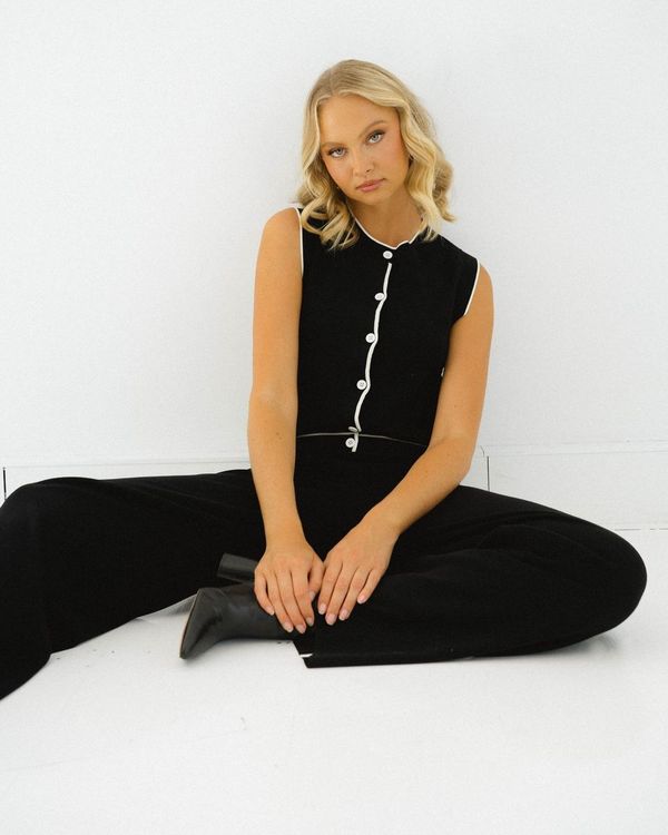 The mini top is a cute sleeveless, button up top, available in two color ways.