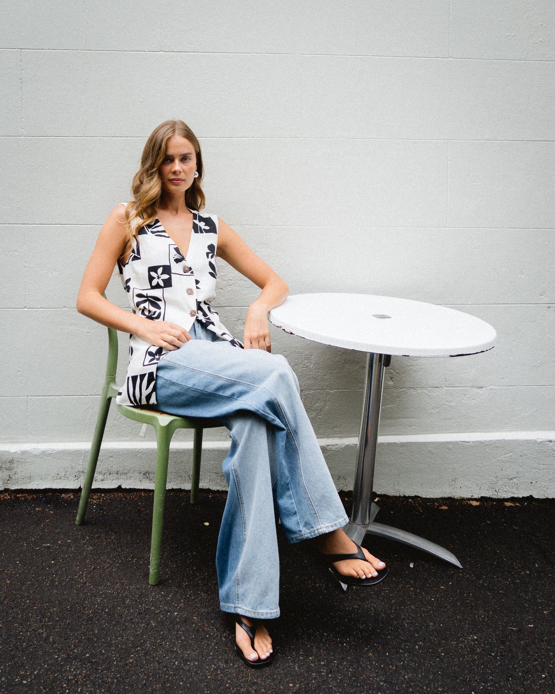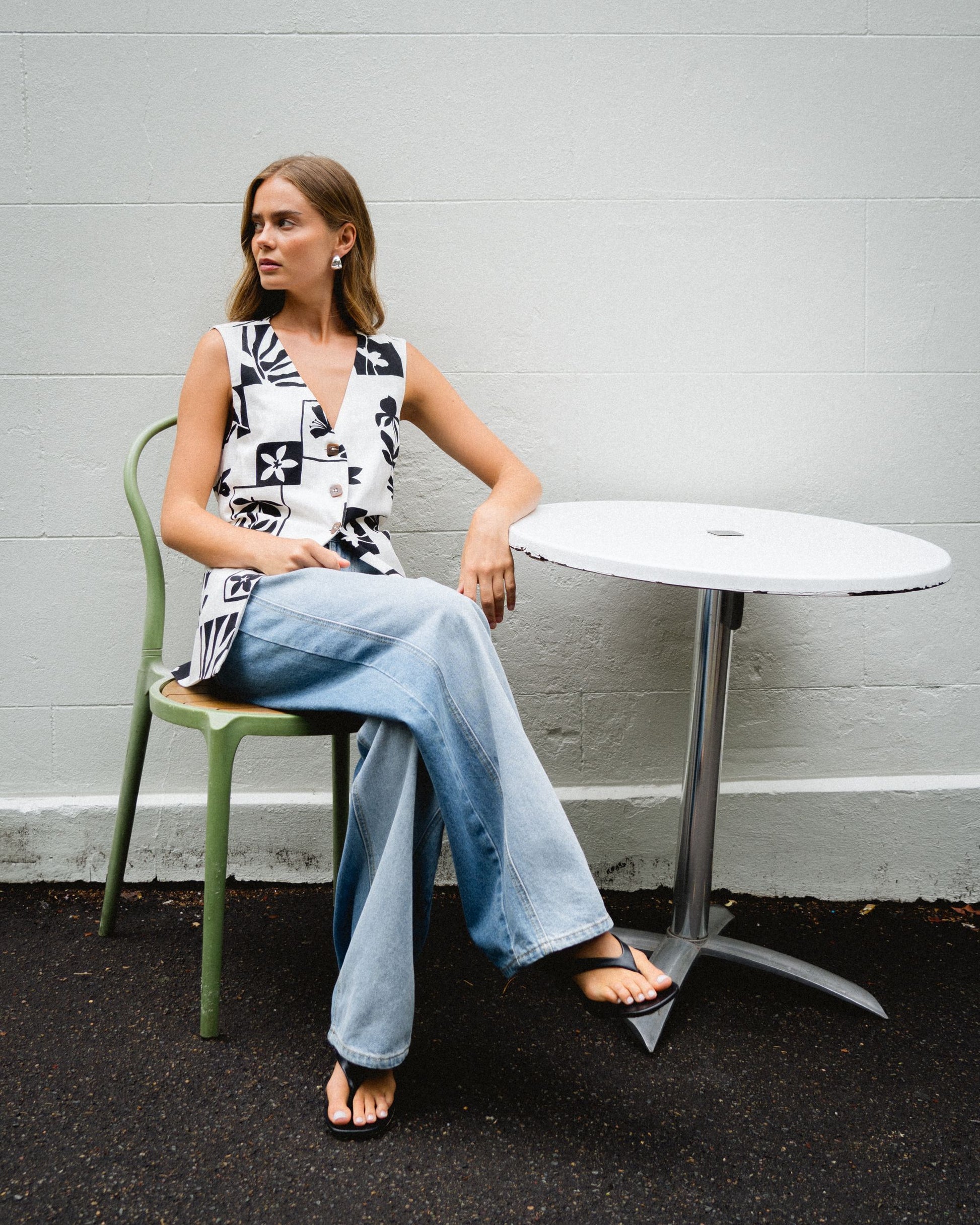 The SAMAYA VEST is a blend of trendy and timeless, featuring a bold print that adds a touch of fashion to your wardrobe. Perfect for any style, this vest is a must-have for those looking to make a statement. Stay on trend and elevate your outfit with this versatile piece.