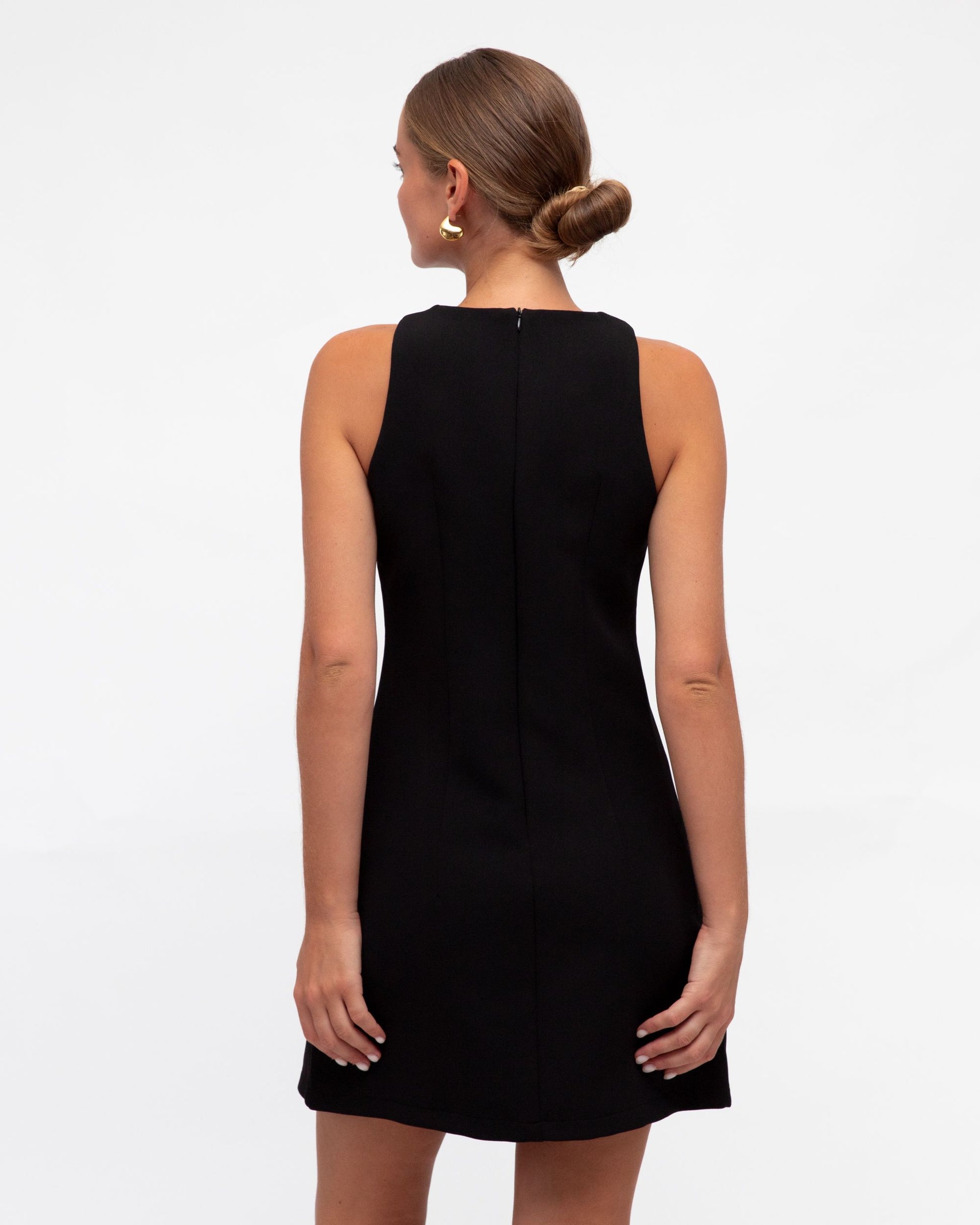 The Lilly dress is a classic sleeveless black dress with beautiful gold Lilly flower broaches that add a stunning detail to it's design.