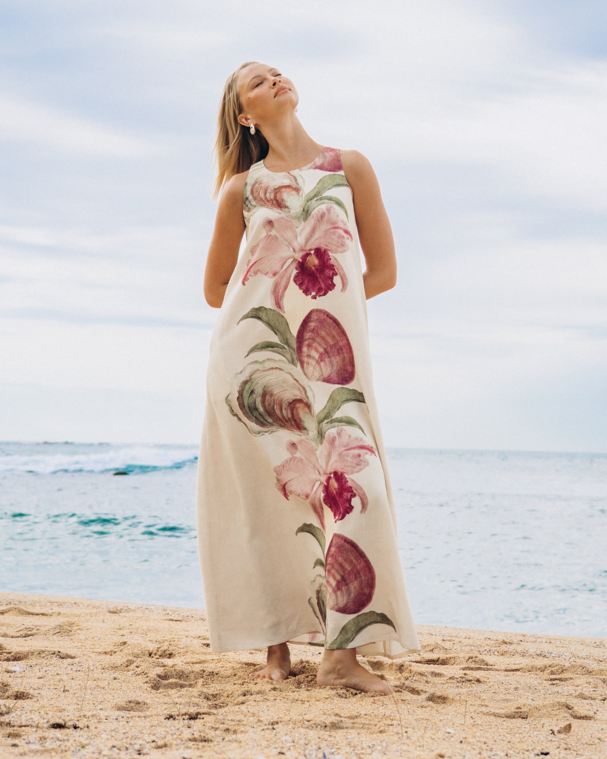 Dive into coastal charm with this delightful shirt dress, showcasing an enchanting blend of floral motifs and shell designs in a captivating color palette. Perfect for those who love a touch of whimsy and seaside-inspired style, this piece brings effortless elegance to your wardrobe with its playful aesthetic and flattering silhouette.