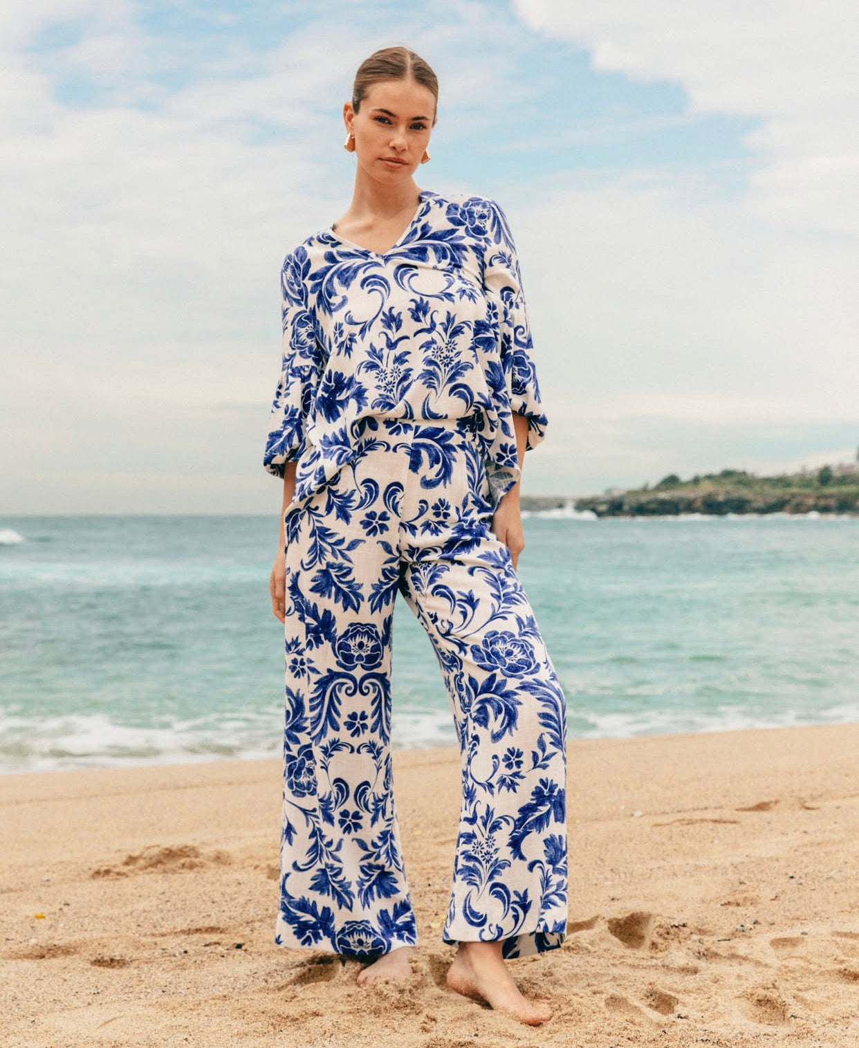 Elevate your wardrobe with this stunning Baroque Top, a showstopper that deserves the spotlight! Featuring an elegant V-neck design and a captivating blue and white print, this piece brings timeless sophistication with a modern twist. The intricate baroque pattern adds visual interest and personality to any outfit, making it perfect for both casual outings and dressier occasions. Pair it with the matching pants for a coordinated look that turns heads, or mix and match with your existing pieces for endless styling possibilities. Each item is sold separately, so you can build your perfect ensemble exactly how you want it. Crafted with quality in mind, this top is a versatile essential that'll quickly become a go-to favorite in your closet.