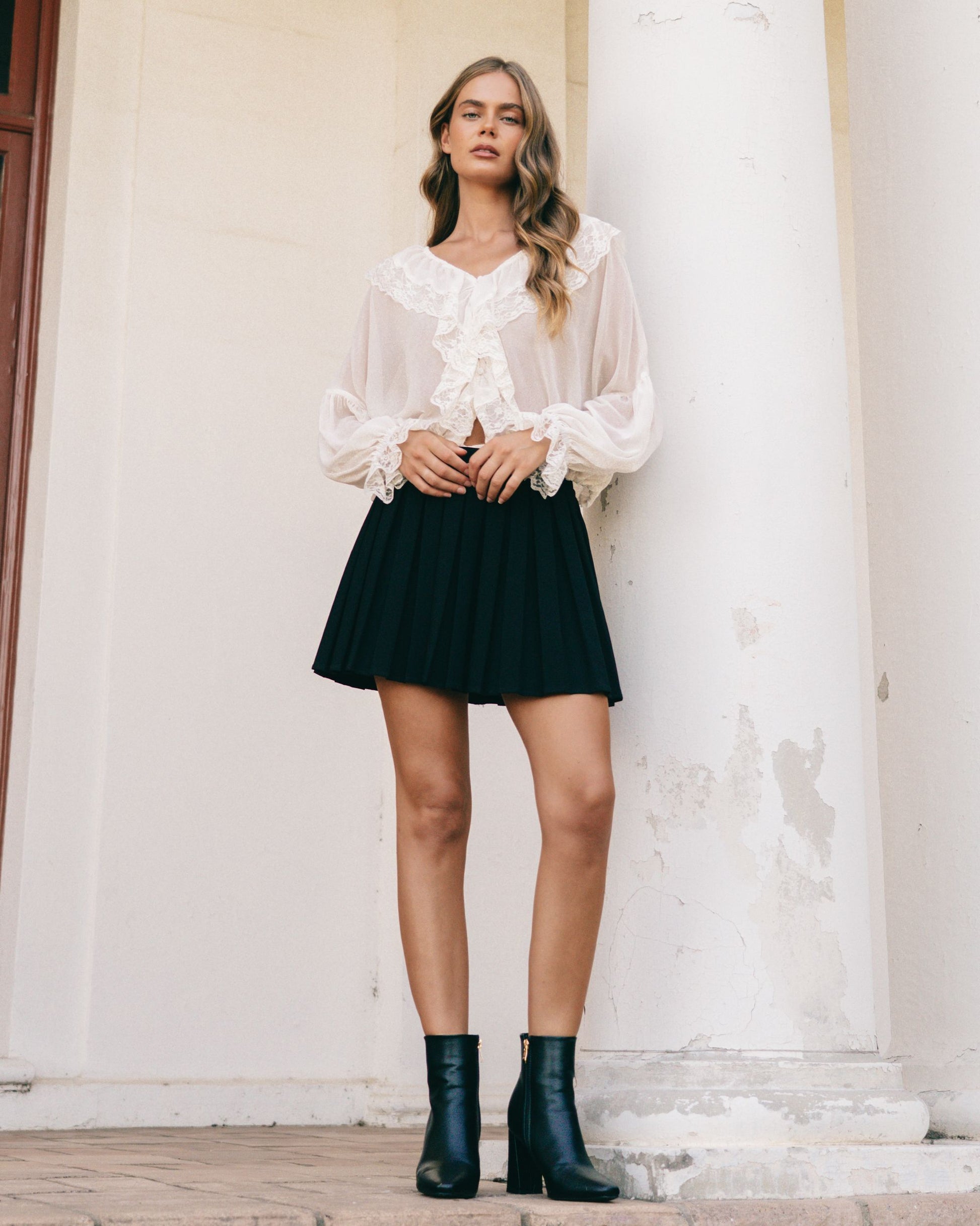 Add some playful magic to your wardrobe with the BILLIE BLOUSE. This sheer blouse features frill lace detailed trimming and a flattering draw cord waist band. Perfect for adding a touch of whimsy to any outfit! (Only available for the fashionably whimsical!)
