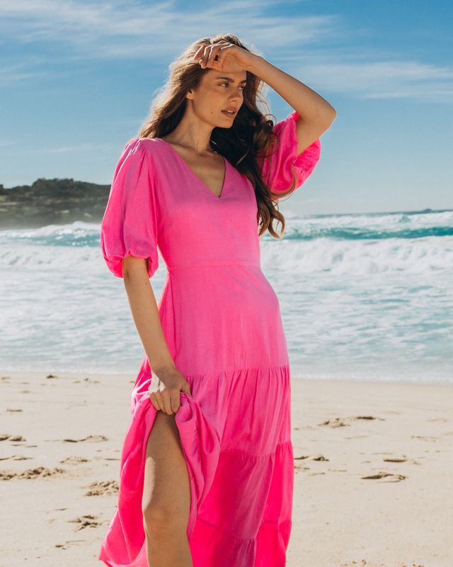 The stunning Rosalie plain maxi is a bright and beautiful dress that works for absolutely any occasion. Featuring a flattering v-neck line and gorgeous gathered pleating at the hem, this dress brings just the right amount of fun and texture to keep things interesting. The flowing maxi silhouette skims beautifully over your frame, offering comfort without compromising on style. Perfect for everything from casual weekend adventures to more dressed-up events, the Rosalie is that versatile piece every wardrobe needs. Slip it on and feel effortlessly chic.