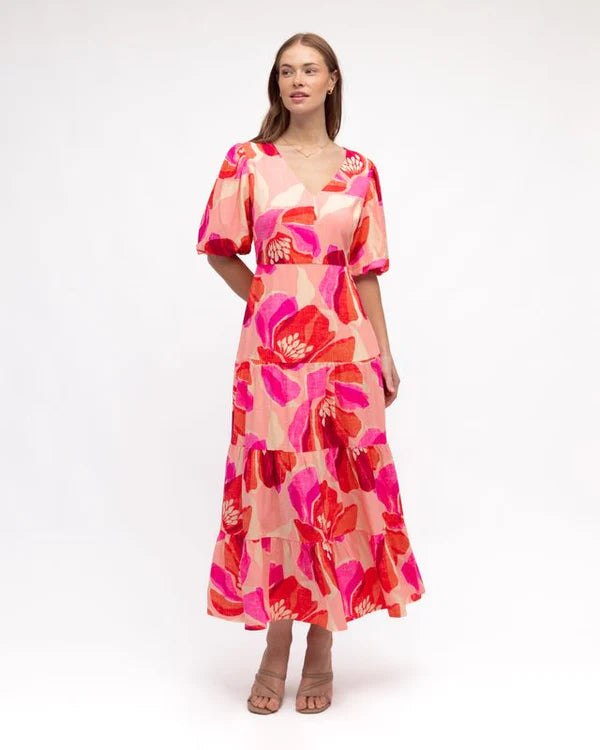 The Rosaline Maxi Dress is a stunning floral print that brings a fresh burst of garden charm to your wardrobe. Its flowing silhouette moves gracefully with every step, perfect for twirling at summer parties or wandering through weekend markets. Lightweight and breezy, this dress keeps you cool while turning heads effortlessly. Whether you're dressing up for sunset dinners or keeping it casual on sunny days, the Rosaline Maxi adds a playful touch of elegance to any occasion. Embrace the floral fantasy and let your style bloom!