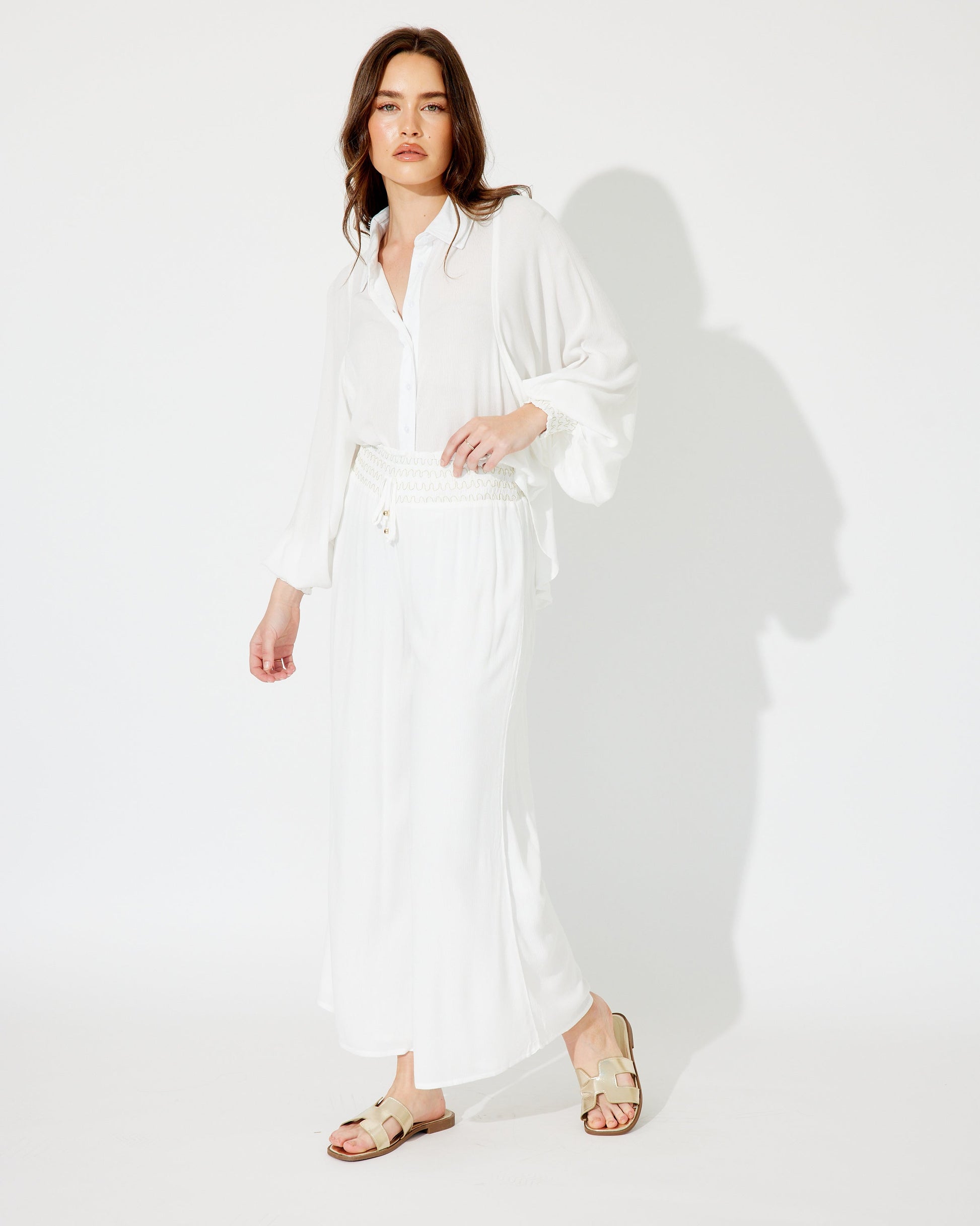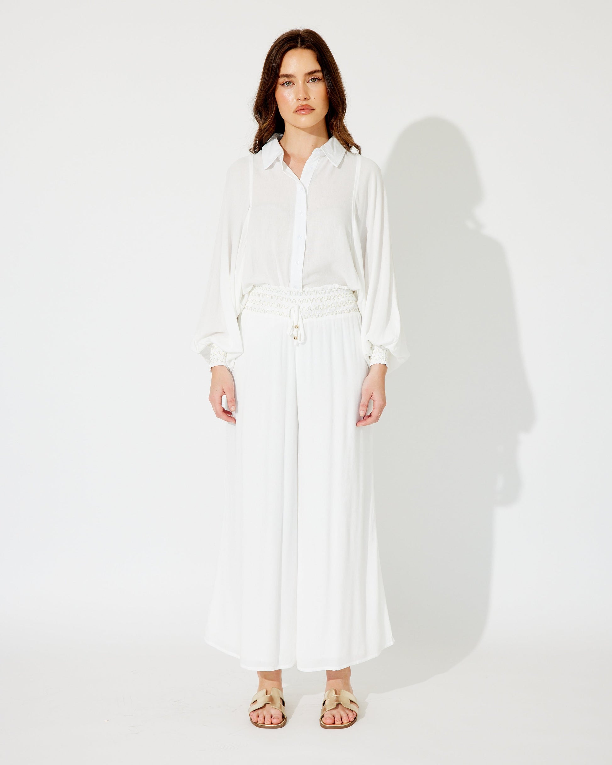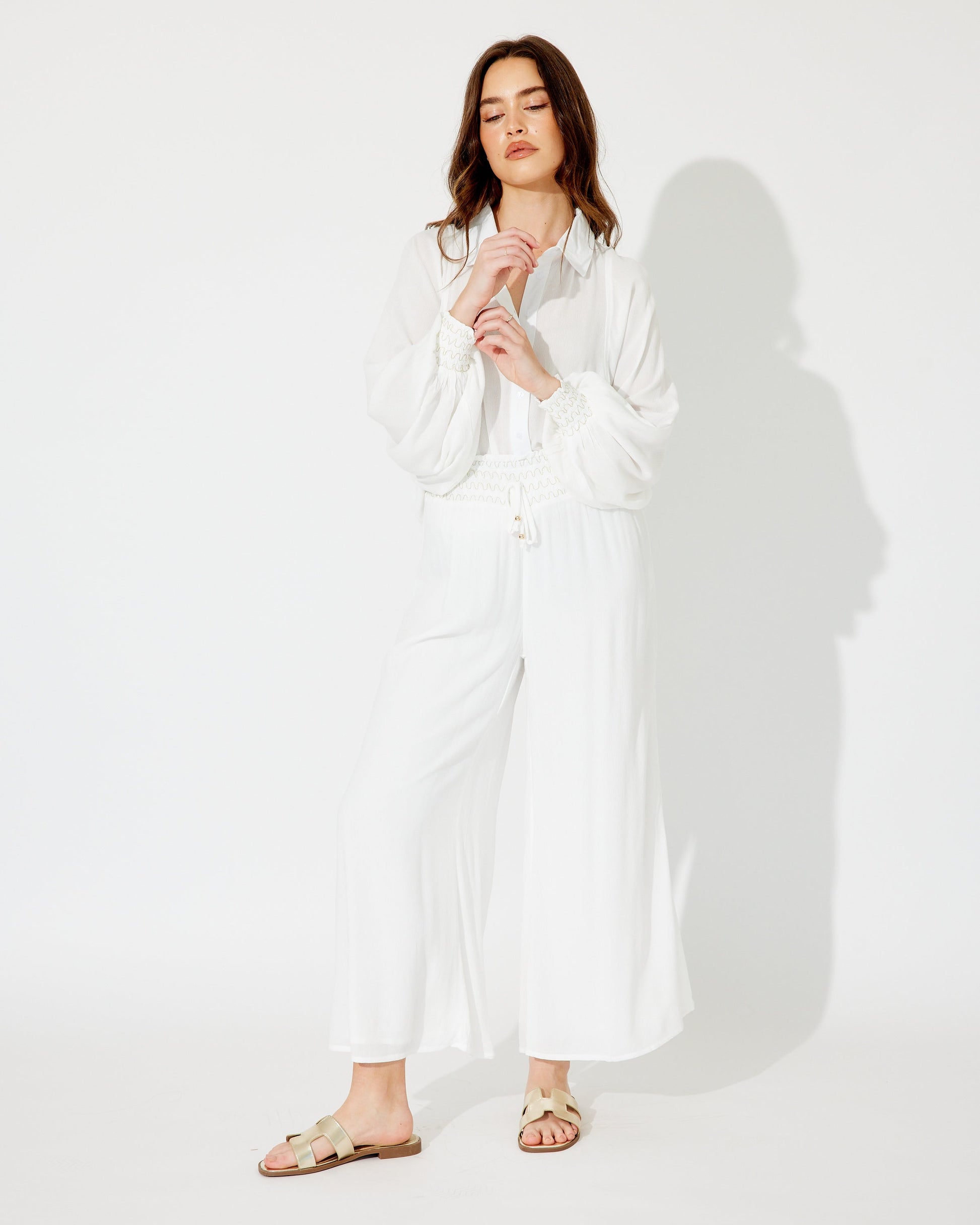 Get ready for the ultimate beach to bar set! Introducing MILOS, made with 100% crinkle rayon with gold lurex and shirring. It's the epitome of glamour! The shirred elasticated lurex-trimmed waist and cuff not only make these sets incredibly comfortable, but also extremely chic. Just imagine, the fabric feels as if it's floating across your skin. Get ready to be the highlight of the day and night with MILOS!