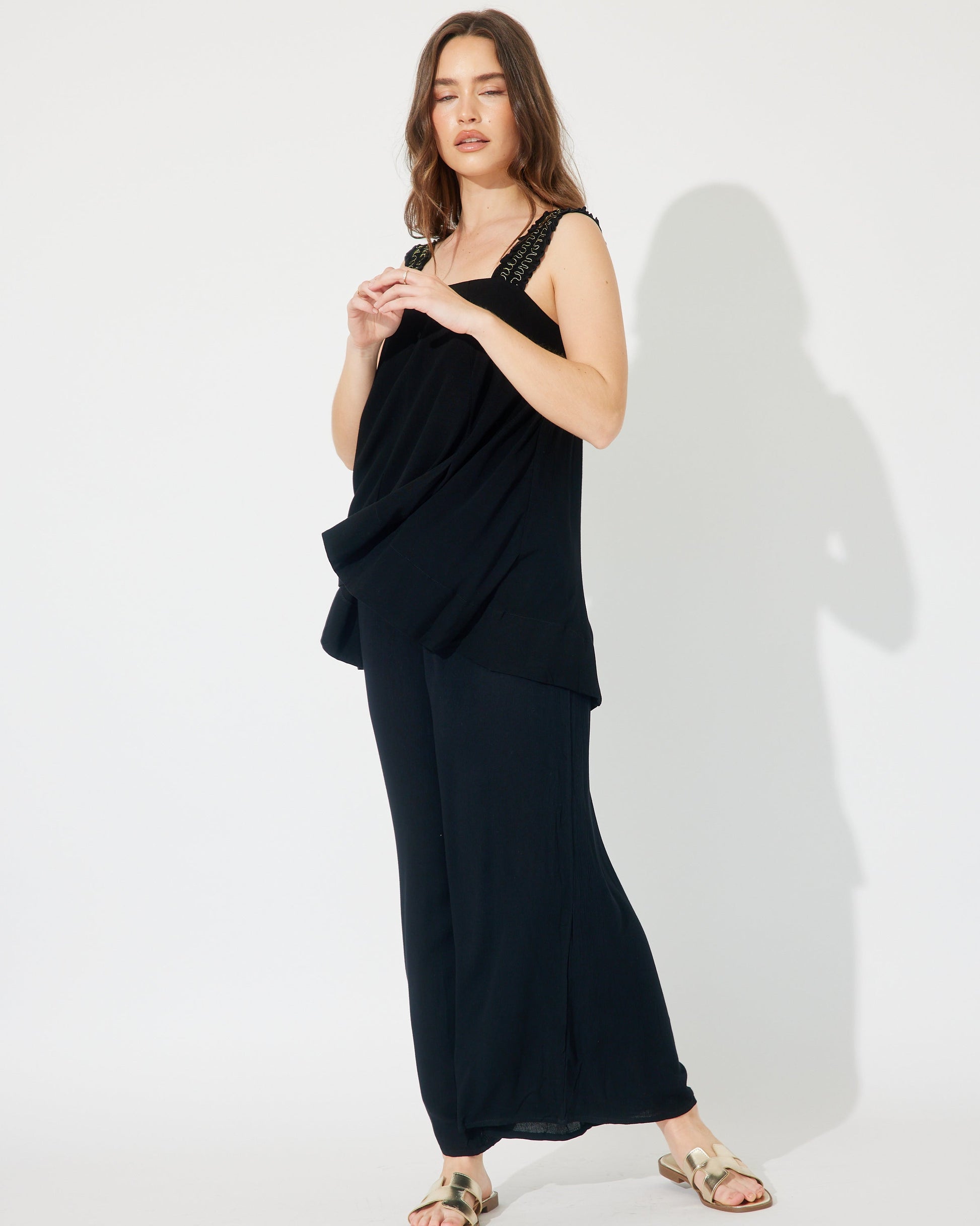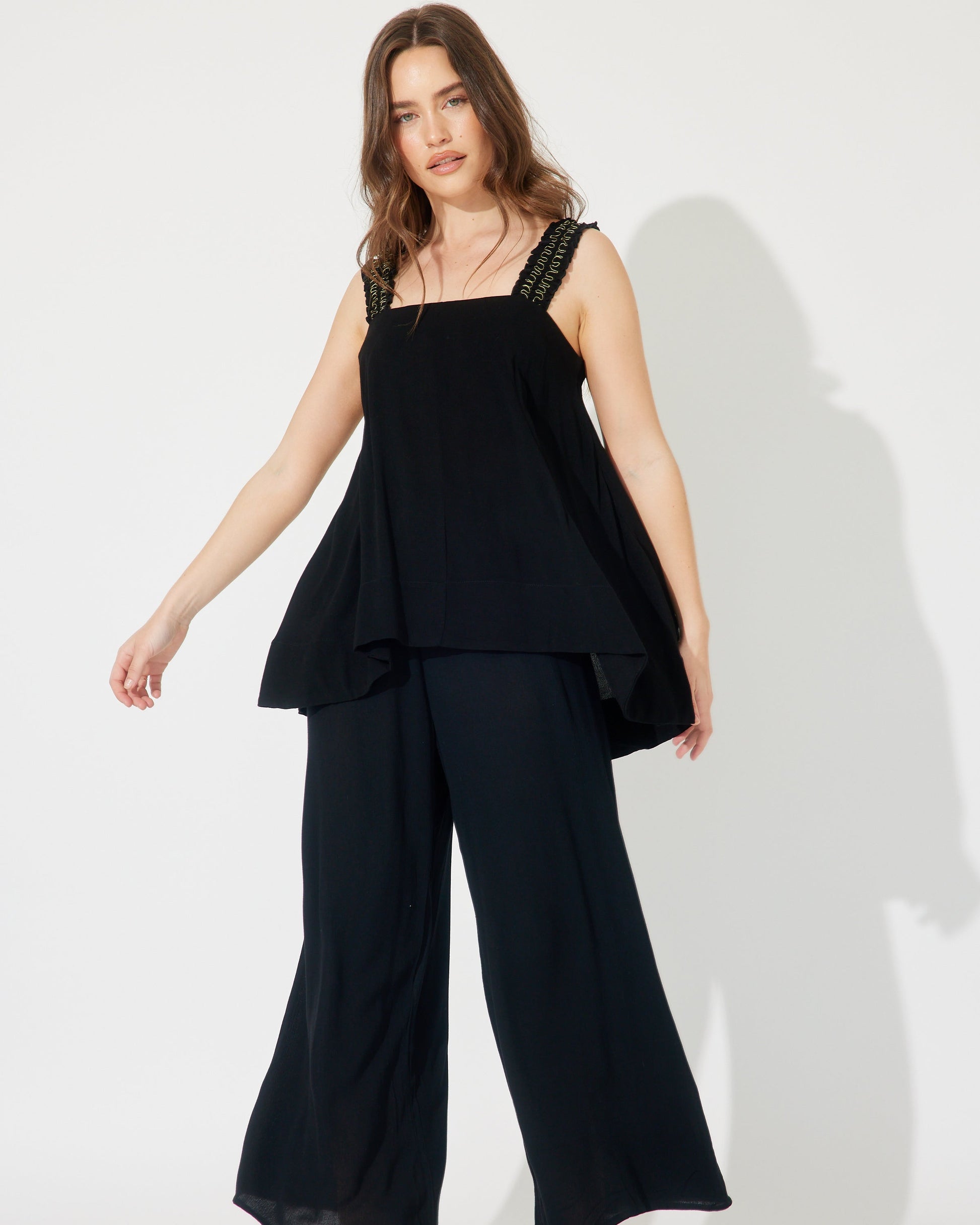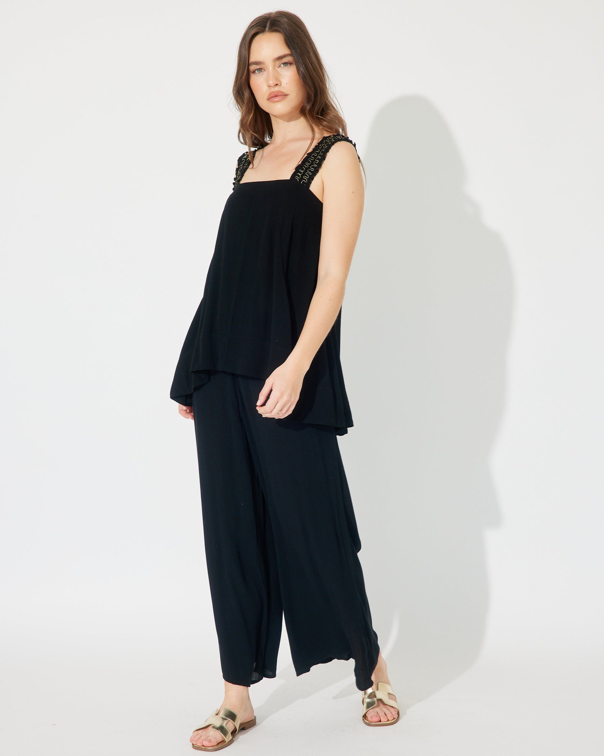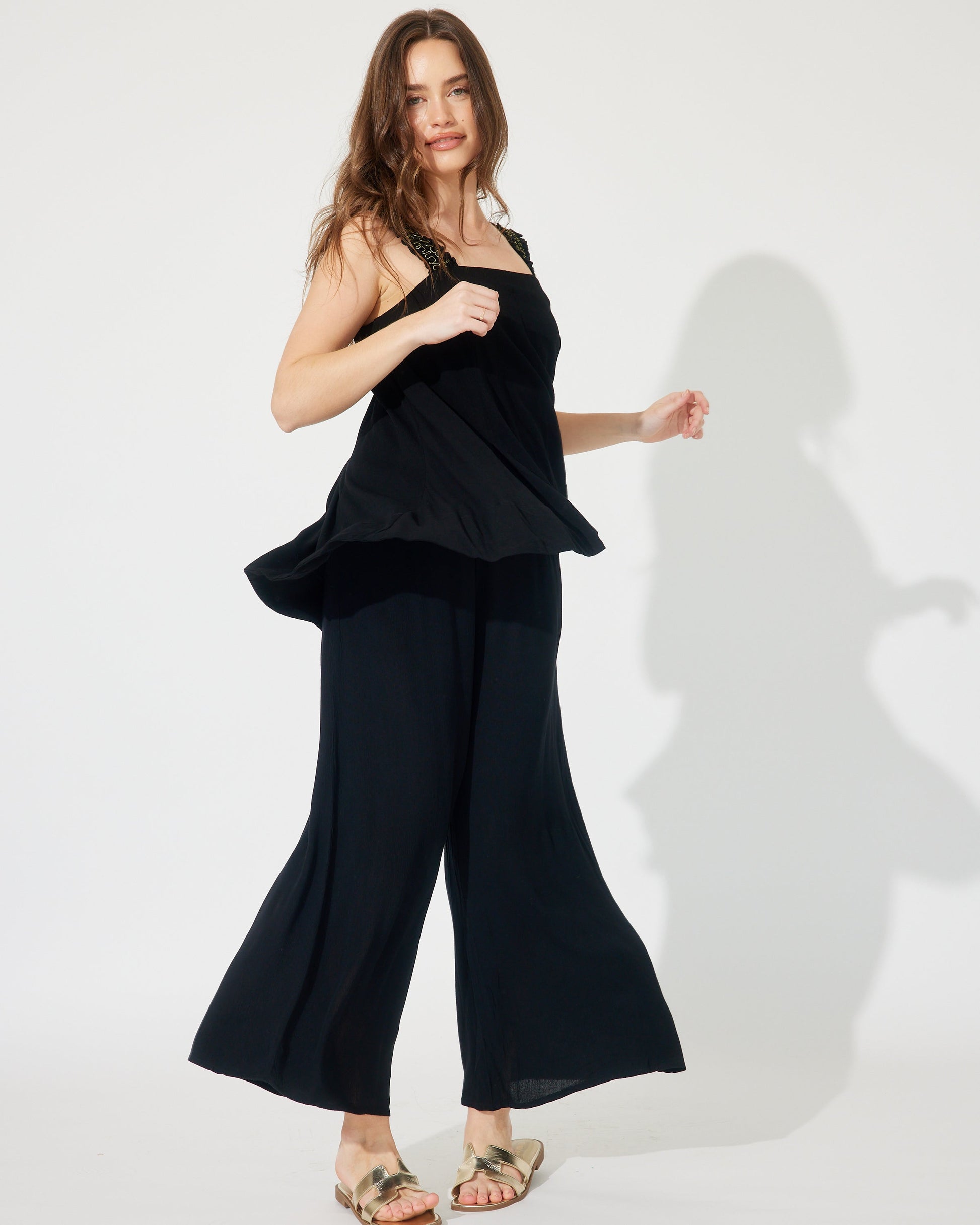 Get ready for the ultimate beach to bar set! Introducing MILOS, made with 100% crinkle rayon with gold lurex and shirring. It's the epitome of glamour! The shirred elasticated lurex-trimmed waist and cuff not only make these sets incredibly comfortable, but also extremely chic. Just imagine, the fabric feels as if it's floating across your skin. Get ready to be the highlight of the day and night with MILOS!