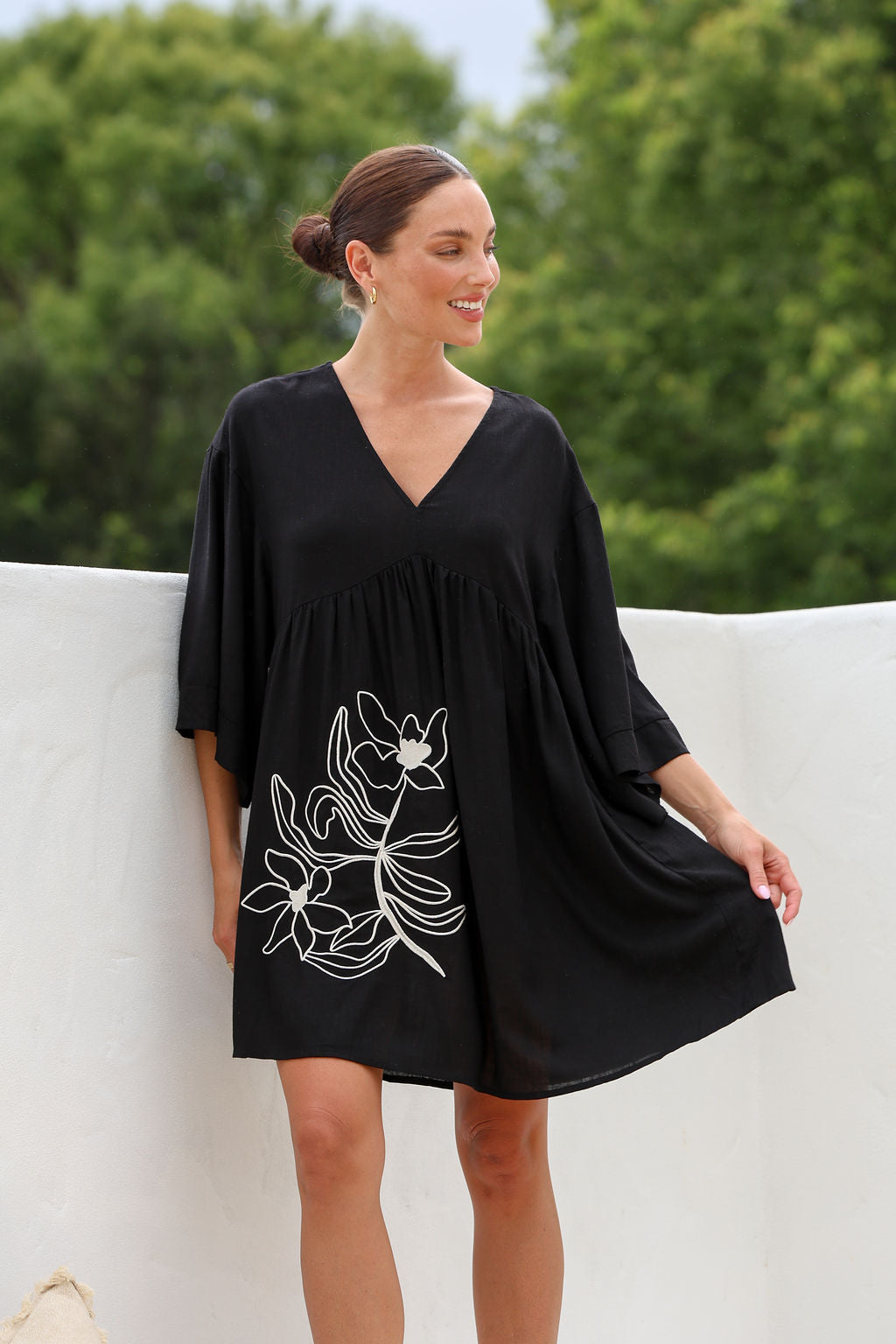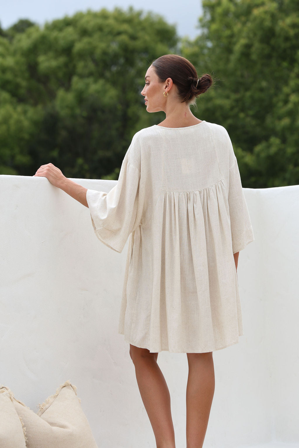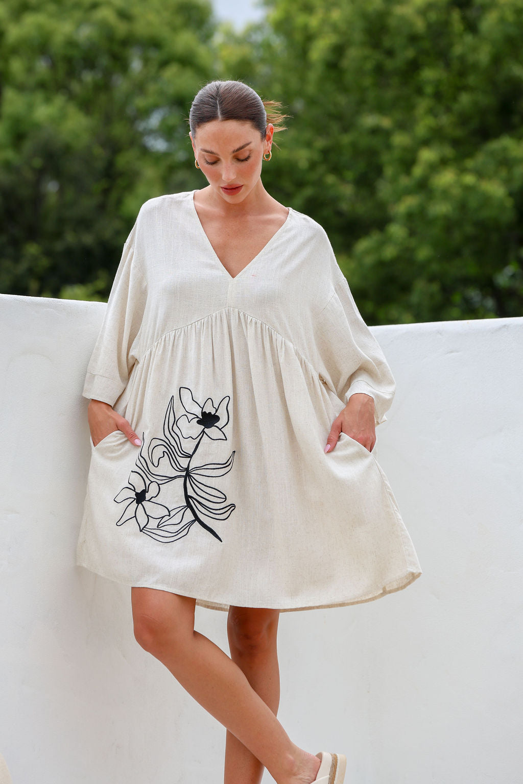 Looking for a unique addition to your wardrobe? Check out our ARIA SHIRT! This linen rayon blend embroidered smock dress doubles as a stylish shirt. With a flat front, elastic back, and side pockets, it's the perfect combination of comfort and functionality. Plus, it's our top-selling hilo oversized design!