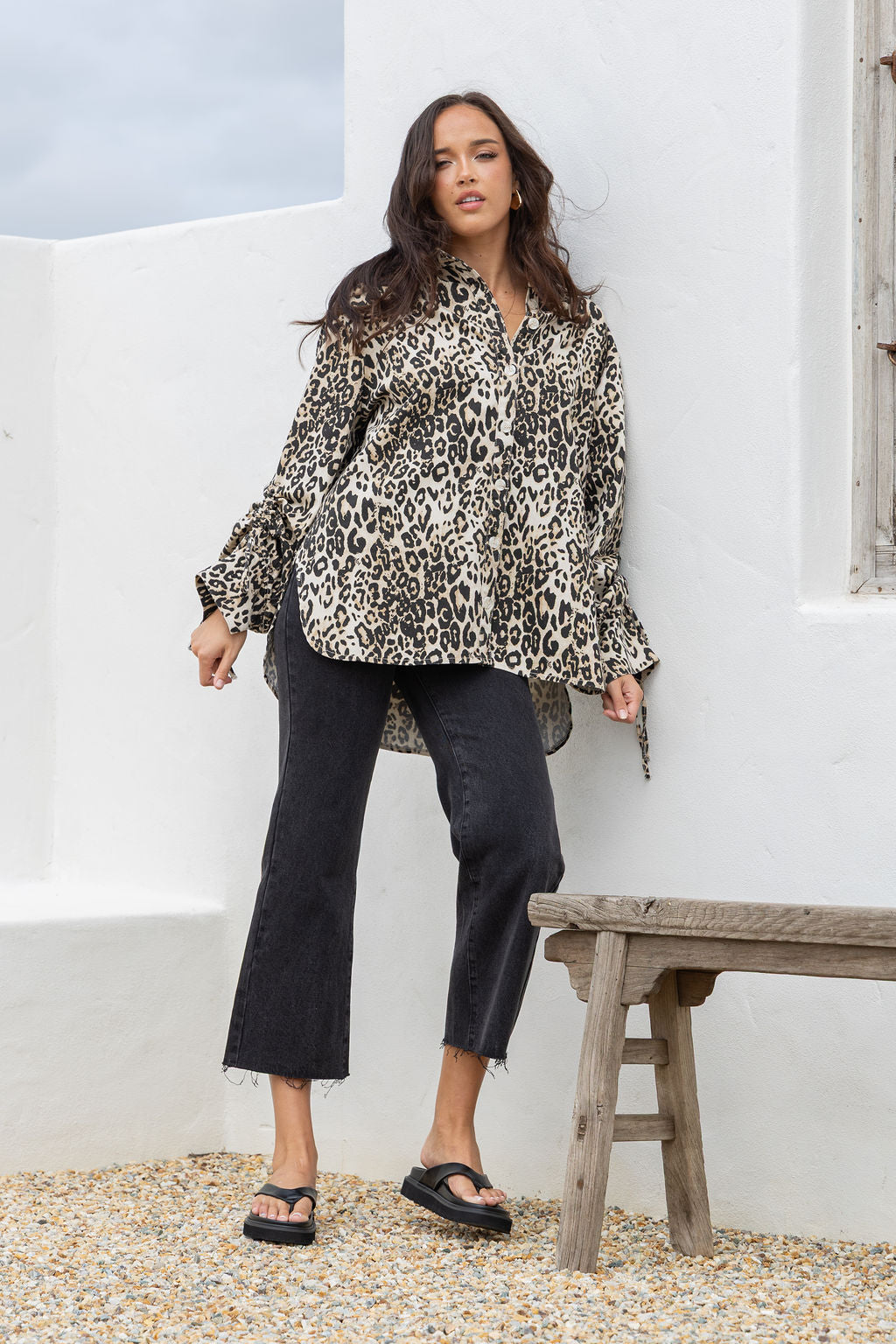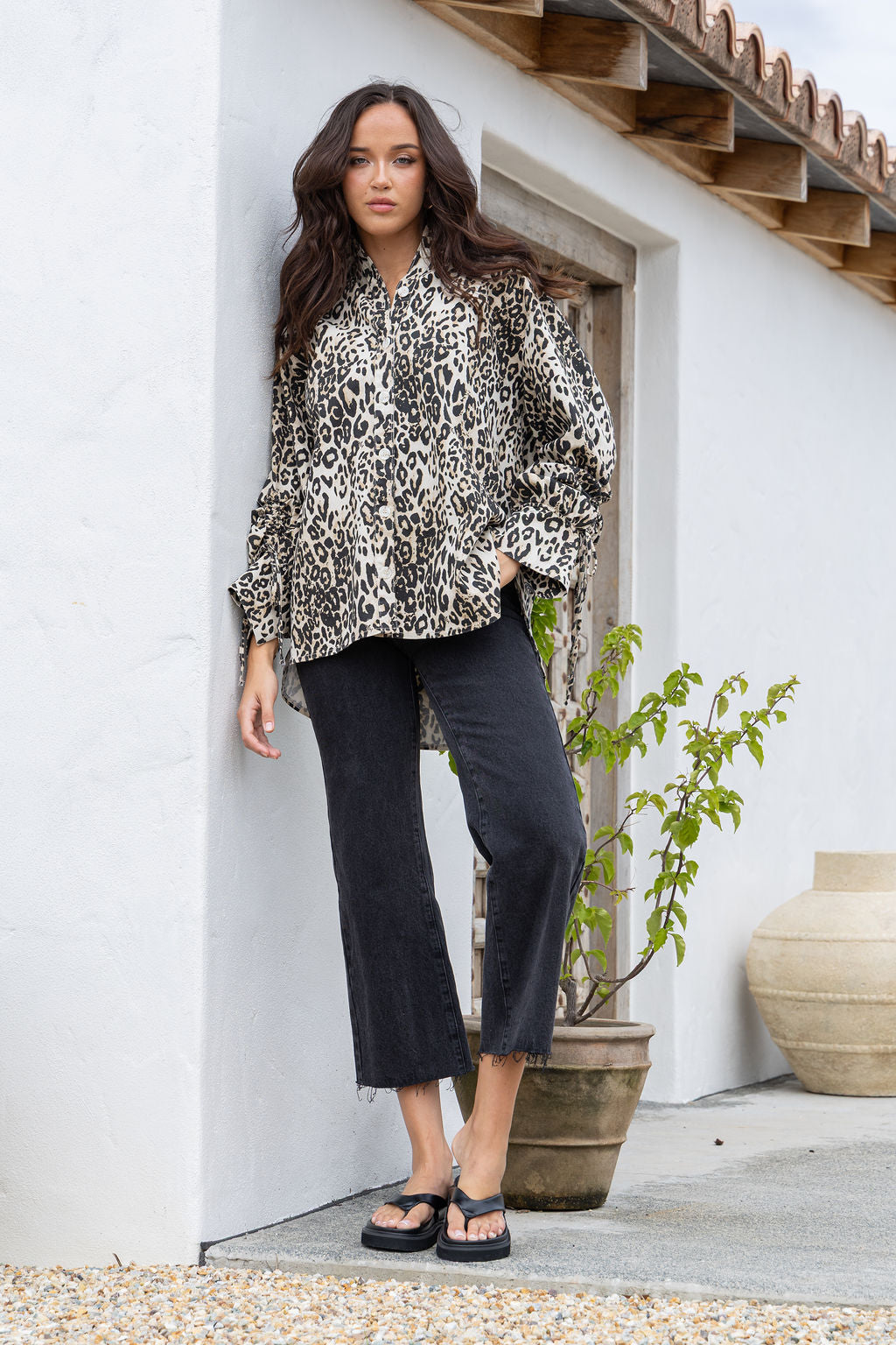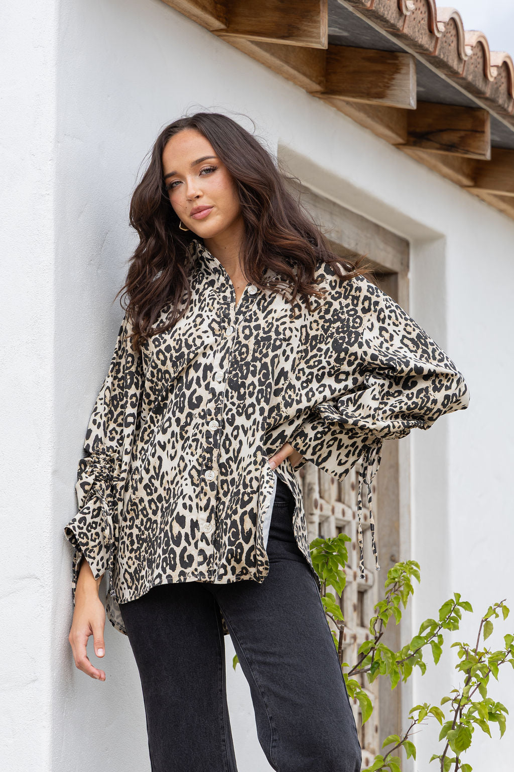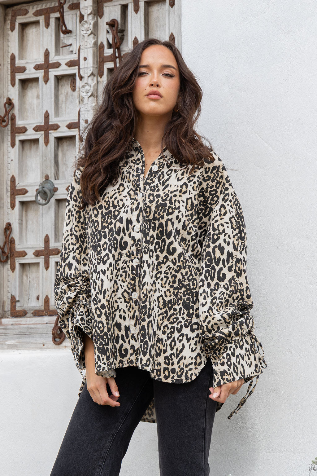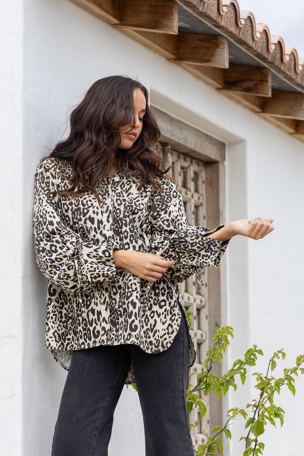 The REGGIE SHIRT is a versatile and fashionable addition to any wardrobe. With its oversized fit and bold leopard print design, it offers both style and comfort. Plus, it's a must-have for any fashion-forward individual looking to elevate their outfit game.