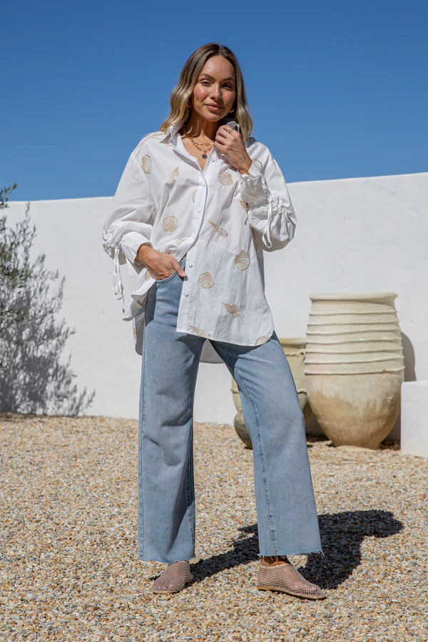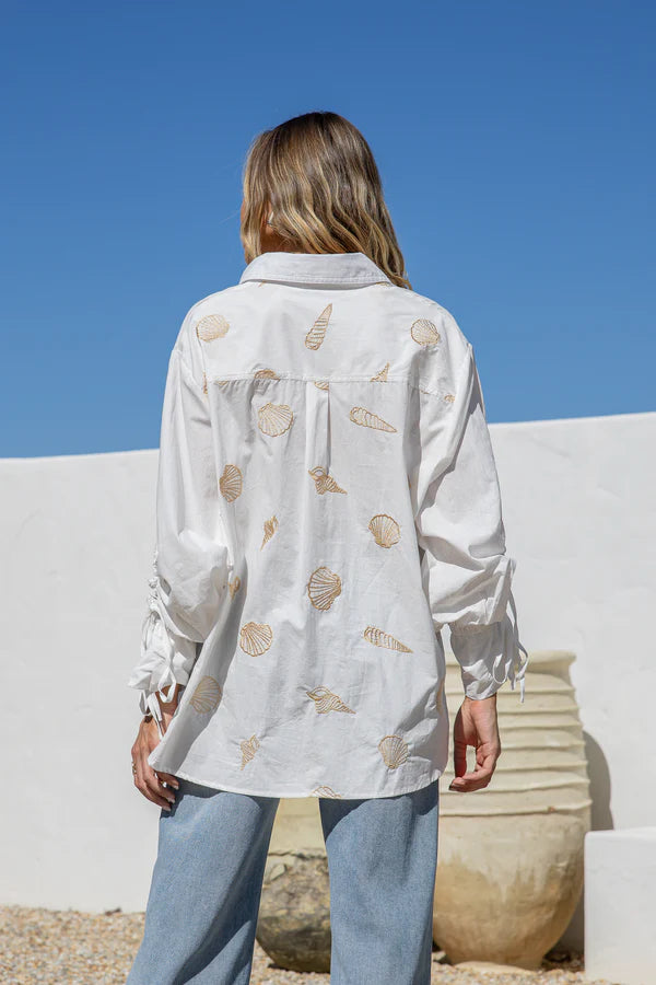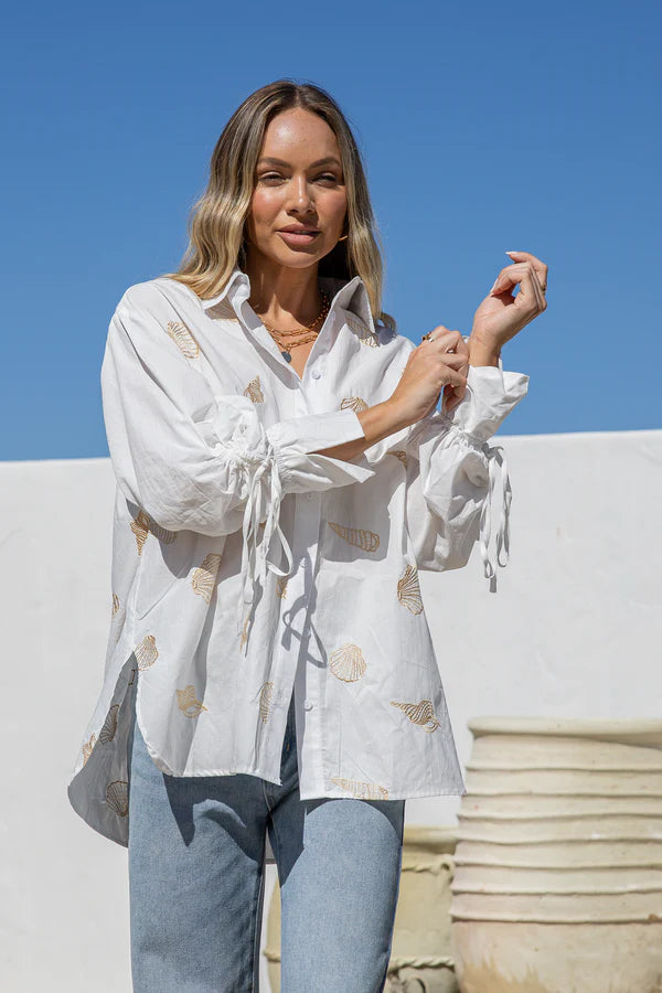 Introducing the Nautilus Shirt! Made from 100% cotton, it features exquisite gold embroidery on both sides. With comfortable elasticated cuffs and a drawstring sleeve feature, its simply stunning. This is our best-selling shirt block.