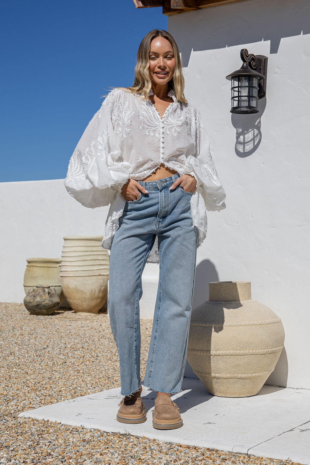 Discover the limited edition Shell Shirt Ex Dreams, crafted from 100% cotton featuring a stunning cotton voile fabric adorned with delicate embroidery. This playful update boasts a longer hi-low body length than the original Dreams blouse, giving it a breezy, effortlessly stylish vibe. Perfect for those who love a touch of whimsy in their wardrobe with the comfort of breathable cotton and a flattering silhouette that moves with you. Add a splash of charm and lightness to your everyday look with this uniquely crafted shell edition.