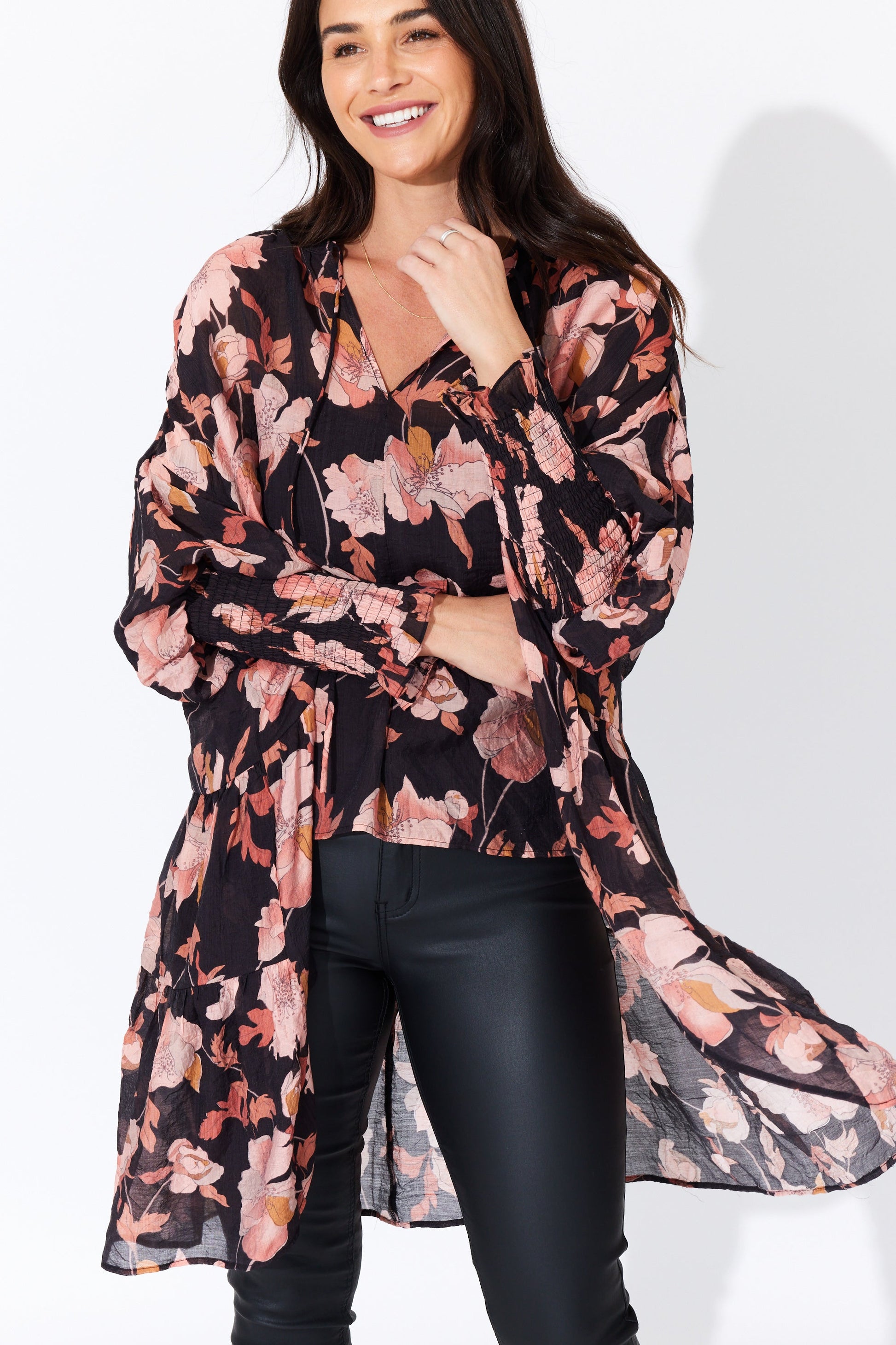 ENCHANTED TOP W 100% COTTON CAMI BLACK FLORAL
