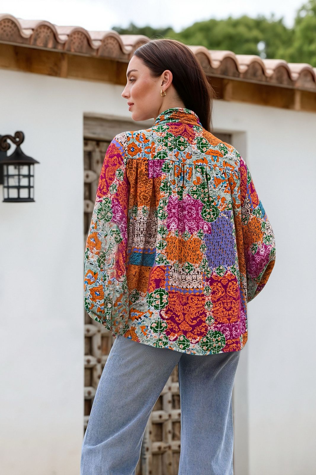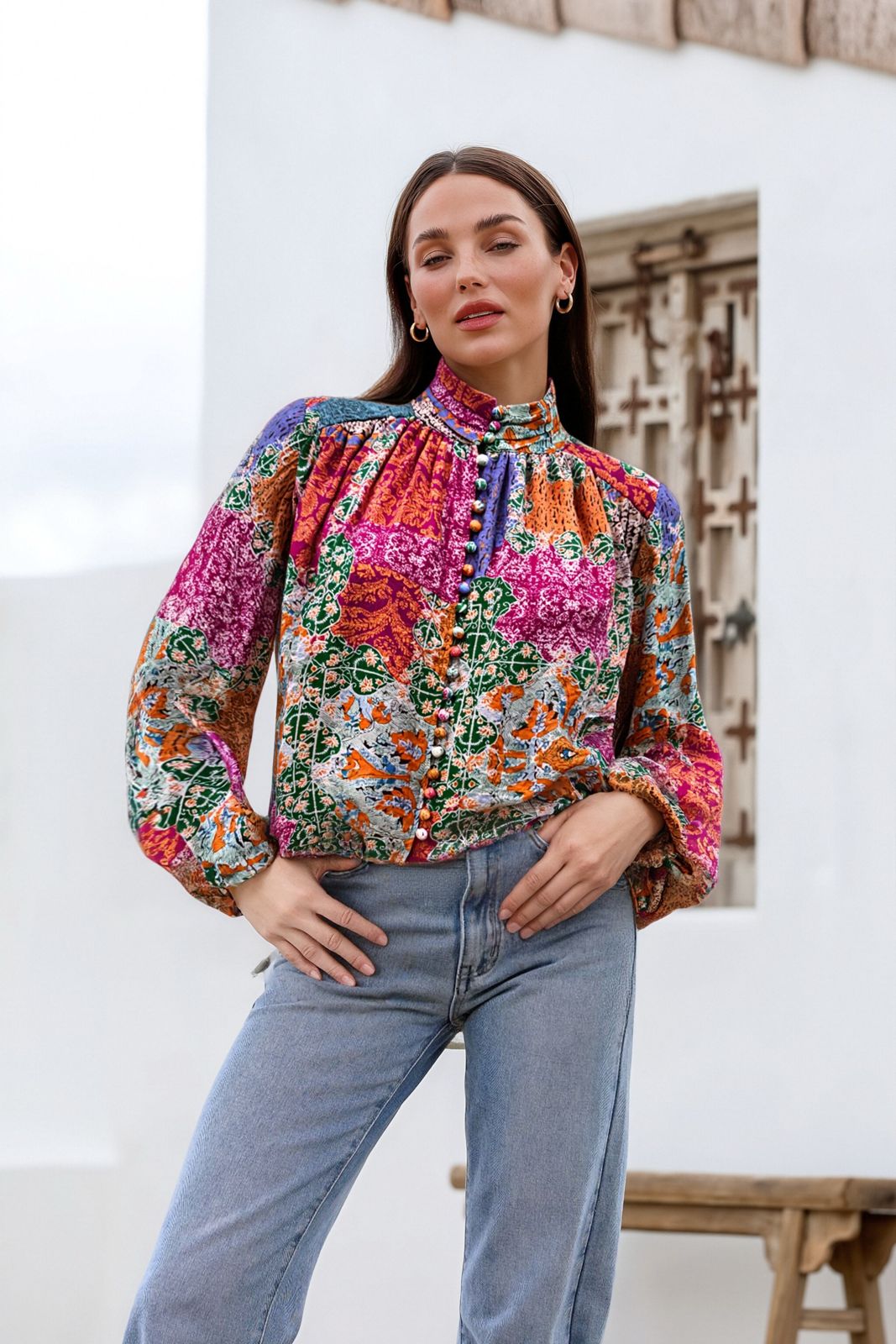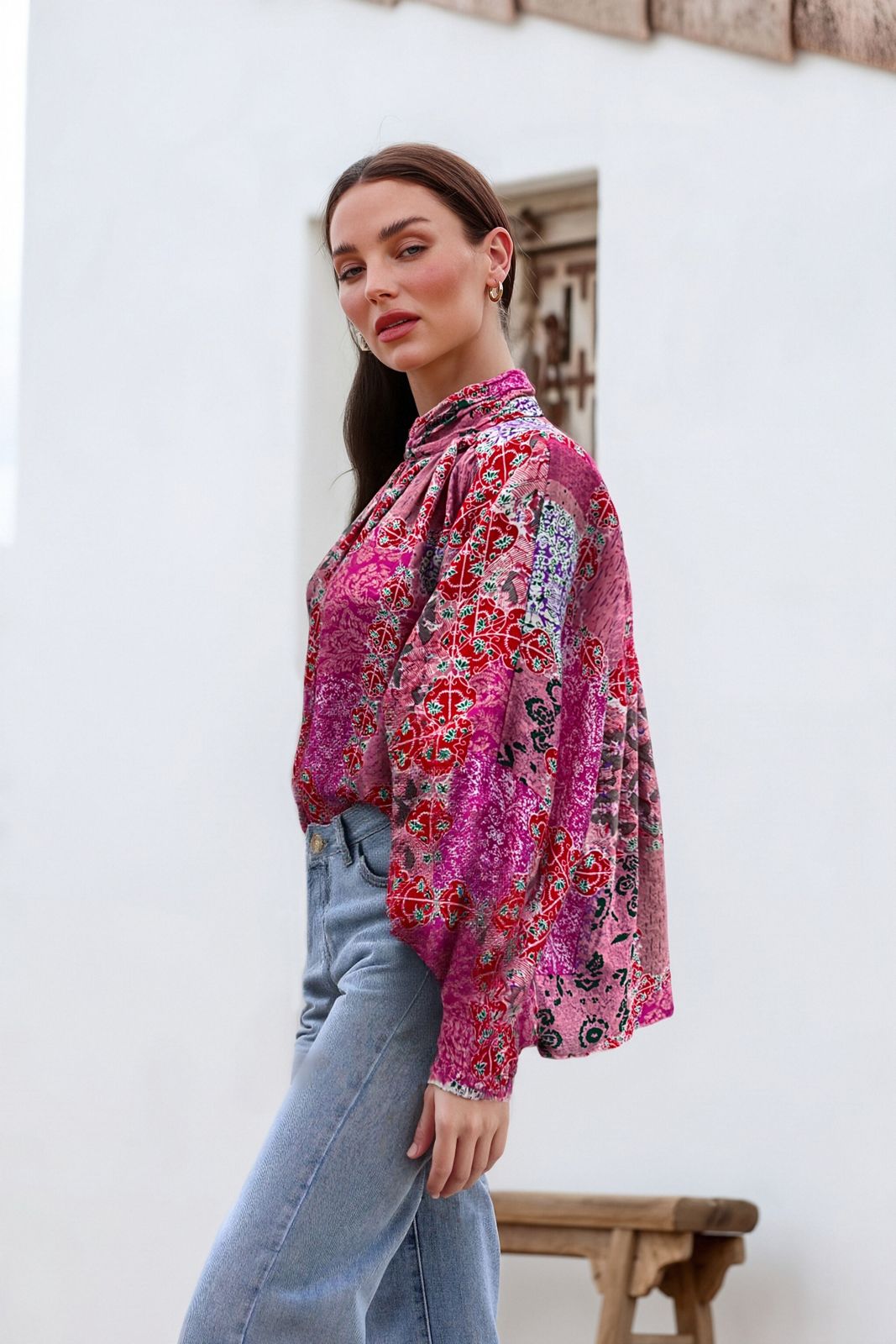 The Dreams Blouse, a registered design by Jatea, remains a top seller. Crafted from soft printed Rayon Tencel and featuring a comfortable rayon lining, it offers both style and comfort.