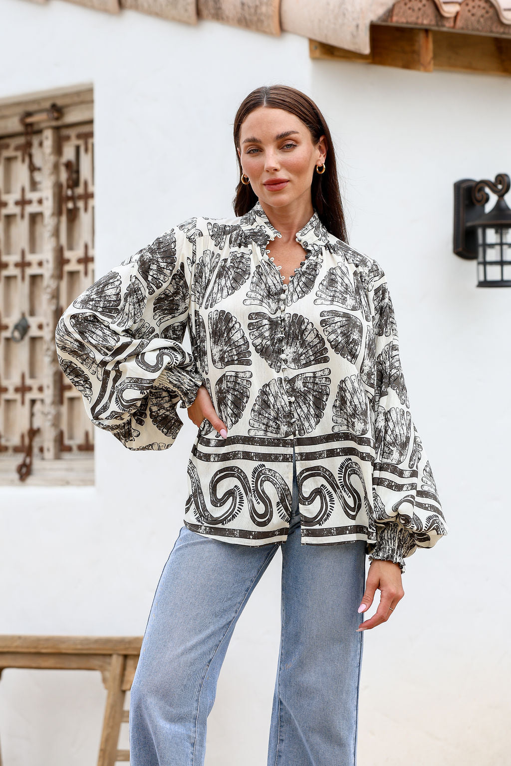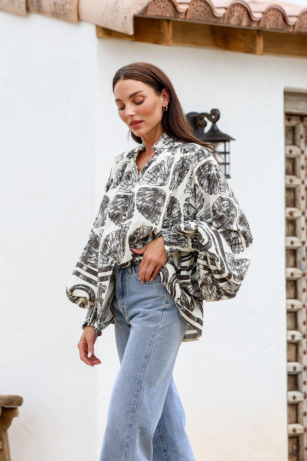 The DREAMS blouse features charming balloon sleeves that add a whimsical touch to your outfit. Perfect for dressing up or down, this versatile piece lets you effortlessly switch from casual days to stylish evenings. Embrace playful elegance with a blouse that’s as fun as it is flattering.