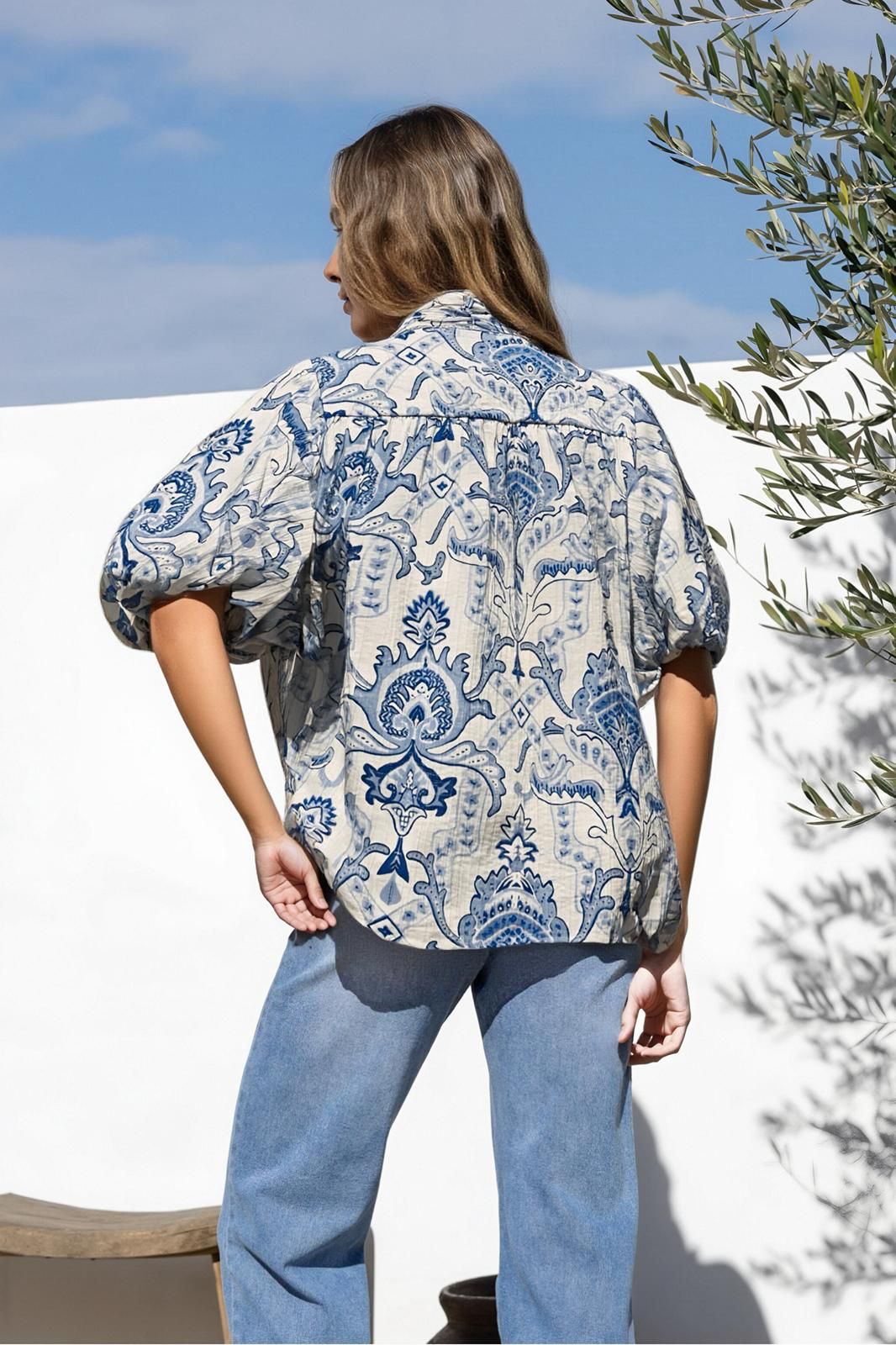 Meet the Lena Bluetile – your new go-to blouse for effortless style! This charming printed short sleeve top features eye-catching button details that add a touch of personality to any outfit. Perfect for casual days or dressing up with your favourite pieces, the Lena Bluetile brings a playful vibe to your wardrobe. The relaxed fit and quality fabric make it comfortable enough for all-day wear, while the vibrant print keeps things interesting. Whether you're heading to brunch, the office, or a weekend adventure, this versatile blouse is ready to make you look and feel fabulous.