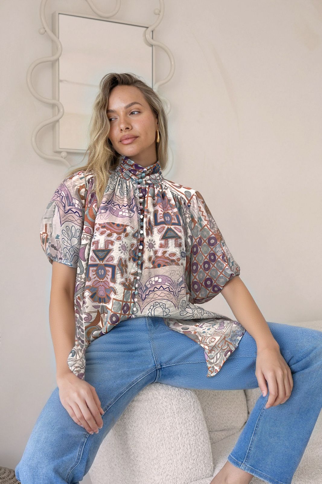 The Lena Moro blouse from Jatea the label is a short sleeve version of our beautiful dreams blouse, reimagined for those who love effortless style with a touch of charm. Featuring gorgeous button detailing and a wonderfully flowy silhouette, this piece moves with you throughout your day. Perfect for layering or wearing solo, the relaxed fit and breathable fabric make it ideal for warm weather adventures or casual office days. Whether you're dressing up with tailored trousers or keeping it cool with your favourite denim, the Lena Moro brings that perfect balance of playful elegance to any wardrobe.