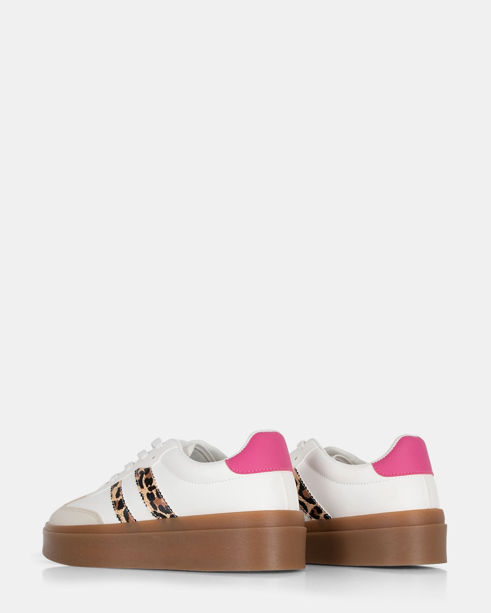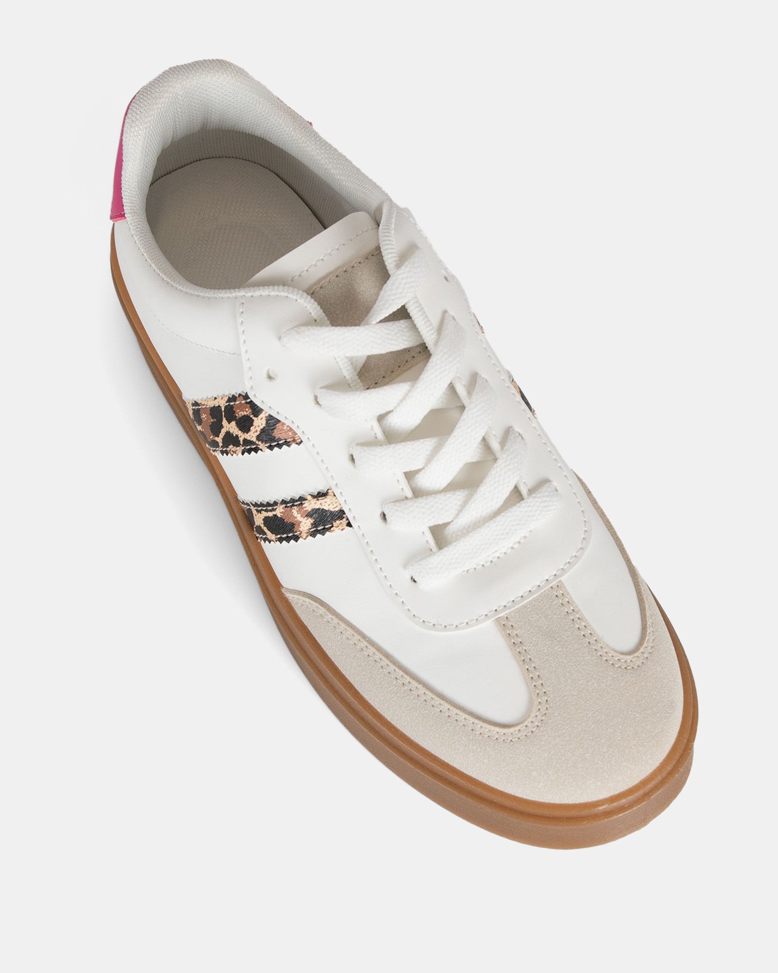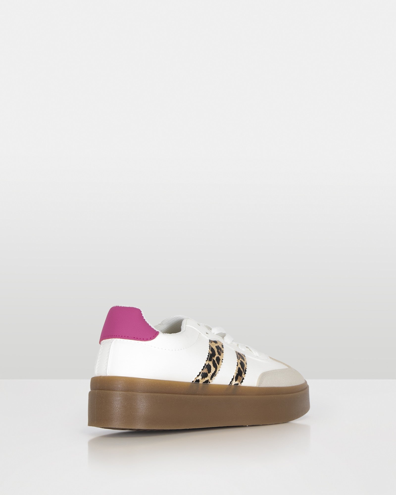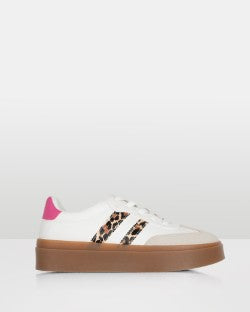 Let your street style run wild with Reeve! Featuring a bold leopard-print stripe and a pop of pink at the heel, this sneaker is anything but basic! Designed with a thick platform sole and an adjustable laced upper, Reeve provides all-day comfort! Ready to step into style with Reeve? Add to your cart today!
