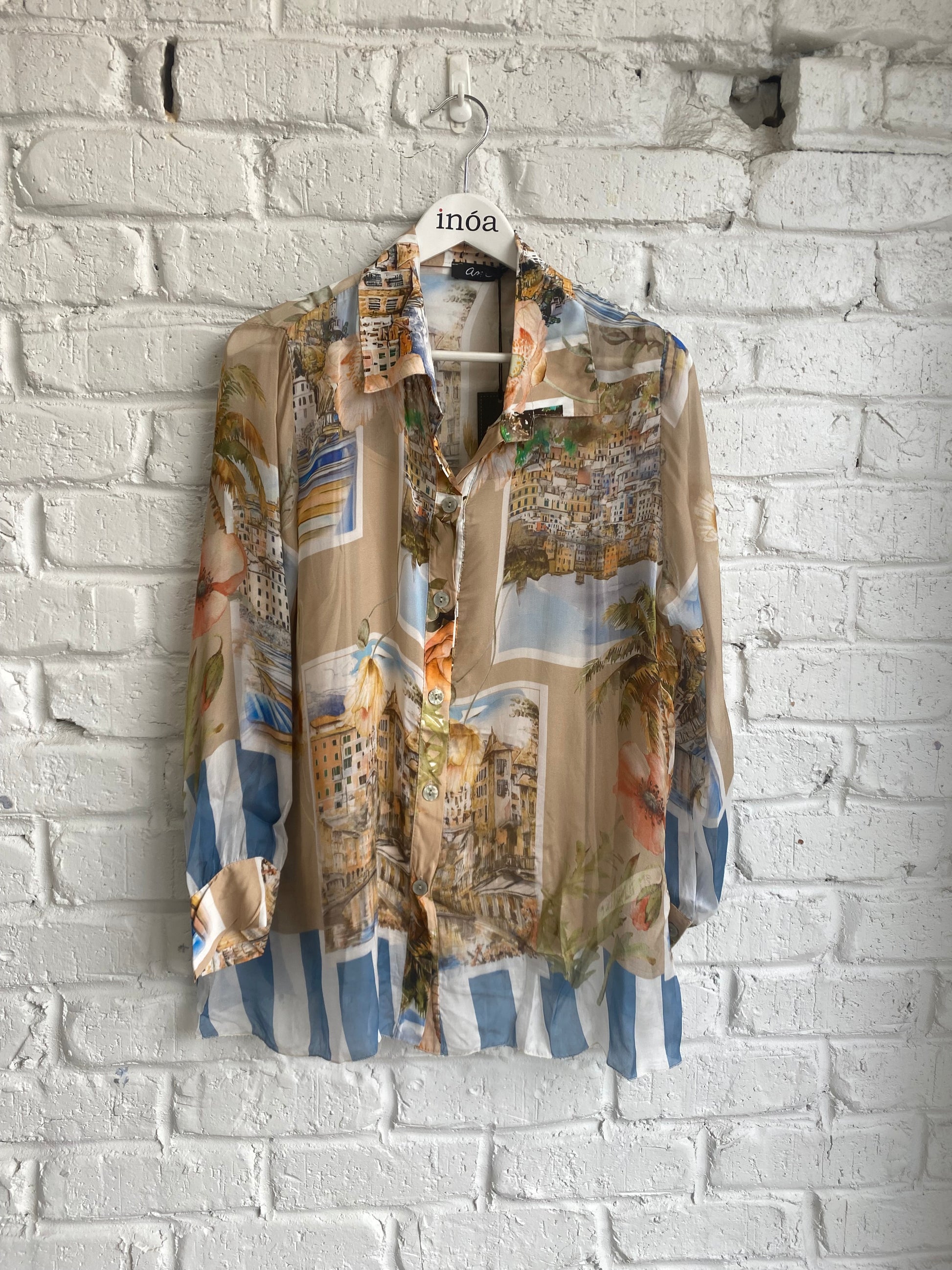 Introducing the Dolci Silk Shirt City – where timeless elegance meets botanical charm! This gorgeous beige silk shirt is a true showstopper, featuring vibrant poppy flowers that dance across the fabric with playful flair. The design is beautifully balanced with delicate blue and white stripe accents that add a touch of sophisticated detail. Crafted from luxurious silk, this piece drapes beautifully and feels as wonderful as it looks. Perfect for elevating your everyday style or making a statement at special occasions, the Dolci is your go-to shirt for turning heads and feeling fabulous. Versatile, elegant, and undeniably charming – this is the shirt that does it all.