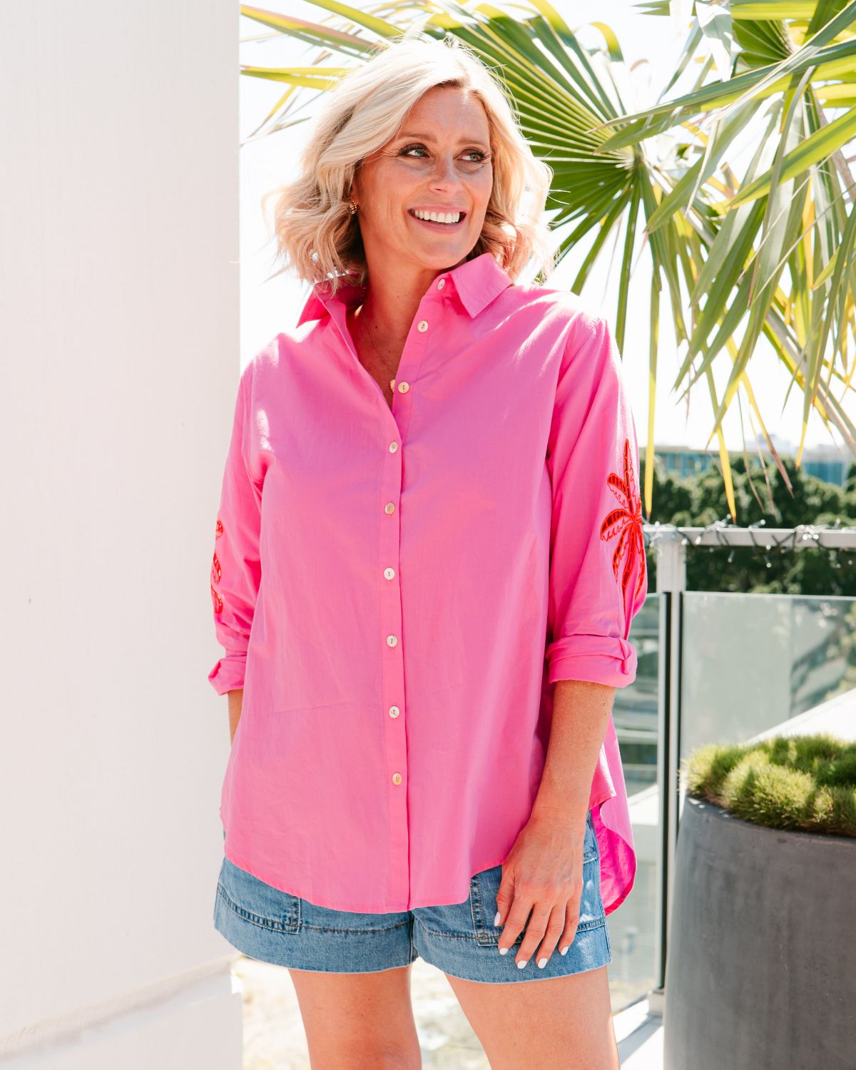 Add a splash of fun to your wardrobe with the Lover Shirt, available in cheerful green and pink. This playful top features adorable palm-shaped cut-outs on the sleeves, giving it a unique, breezy vibe perfect for sunny days or casual outings. Lightweight and easy to style, it’s your go-to shirt for adding a touch of whimsy to any outfit. Whether paired with jeans or a flowy skirt, the Lover Shirt is designed to brighten your look and boost your mood effortlessly. Embrace the playful spirit and make every day a little more colorful!