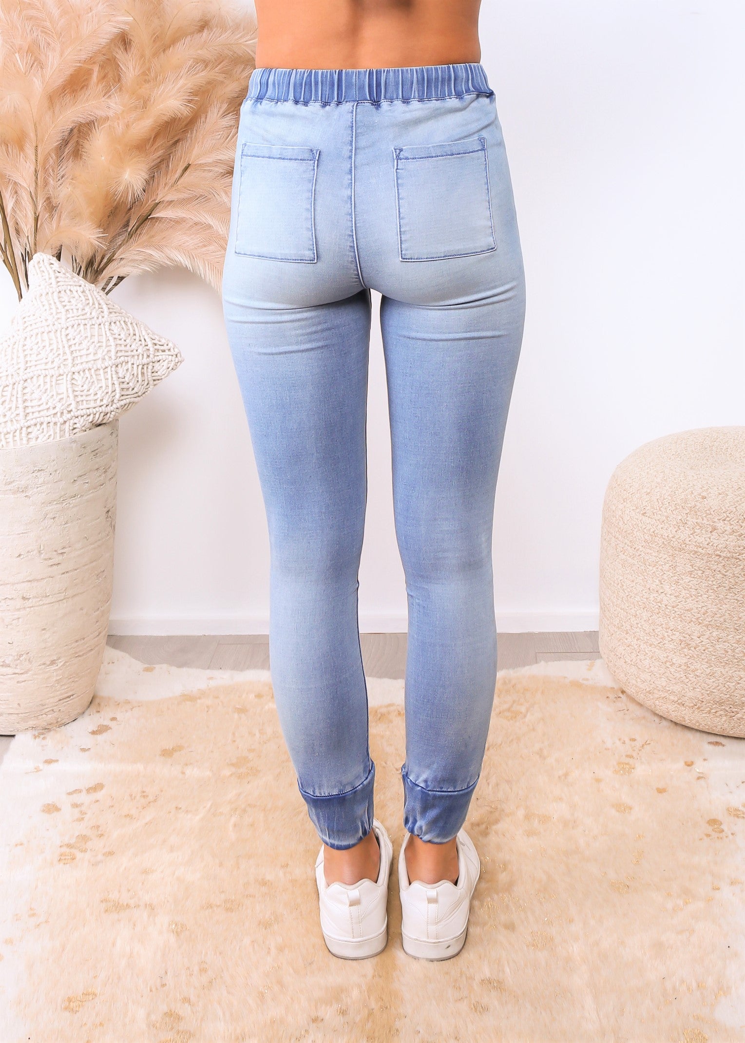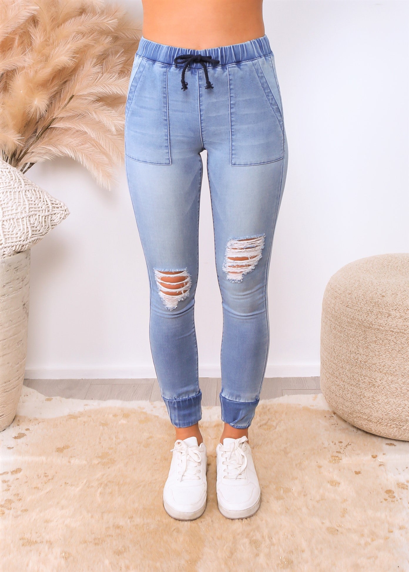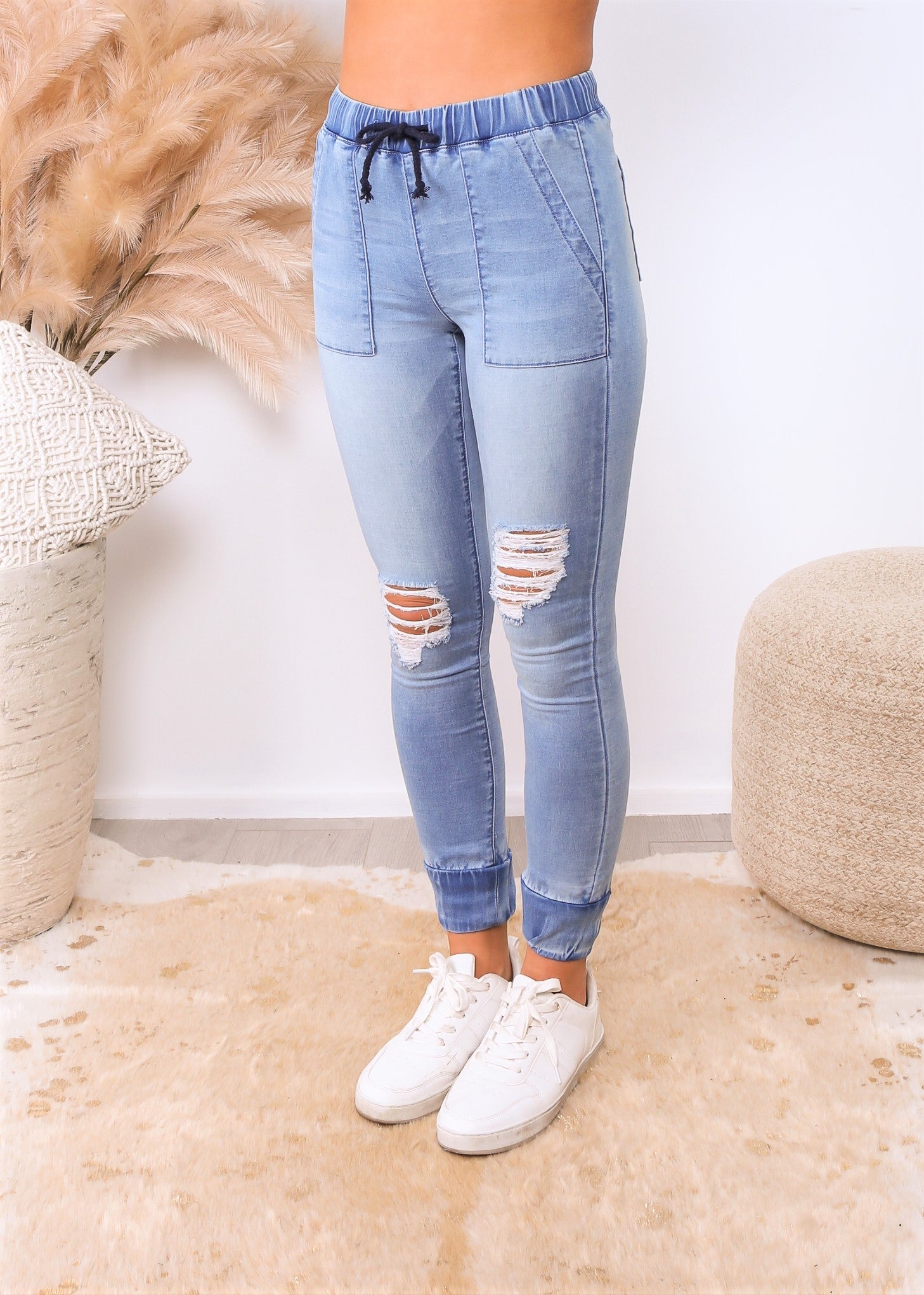 The ARIANA JEAN is a comfortable jogger jean that features stylish rips. These jeans provide a trendy and edgy look, while also allowing for a relaxed fit and comfortable wear. Made with high-quality materials, they are durable and versatile for everyday wear.