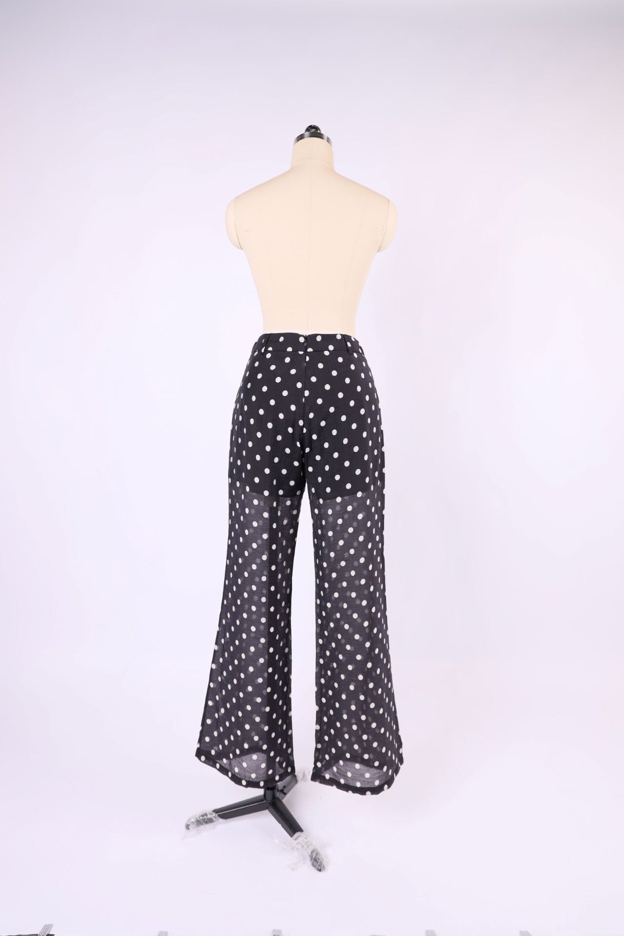The sheer polka dot pant is a versatile wardrobe essential that effortlessly complements any top in your collection. Featuring a playful polka dot pattern, this piece brings a touch of vintage charm and contemporary style to your everyday look. The lightweight, sheer fabric drapes elegantly for a flattering silhouette, making it perfect for layering or wearing as a statement piece. Whether you're dressing up for a night out or keeping it casual, these pants transition seamlessly from day to evening. Each item is sold separately, allowing you to mix and match with your favourite pieces to create endless outfit combinations.