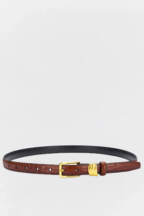Leather Trend Belt in BLK CROC & BROWN CROC with Gold Hardware